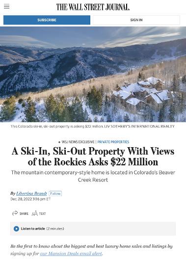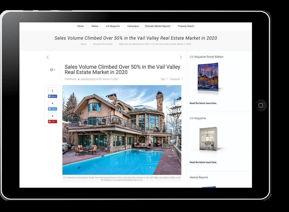 LIV Sotheby?s International Realty creates exclusive content promoting your property to interested buyers in Colorado and beyond. Thanks to our expert marketing team, our channels arealways buzzing with activity With over 45,000 followers,our content reaches a vast audience on a daily basis
