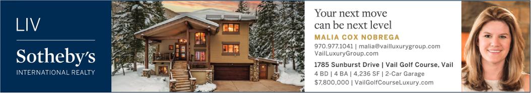 For your Vail real estate needs,look no further than MaliaCox Nobrega,your Vail real estate expert She