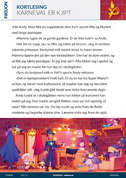 • Kortlesing FIKSJON - korte fiksjonstekster med oppgaver som fokuserer på plot, sjanger og lesestrategier.