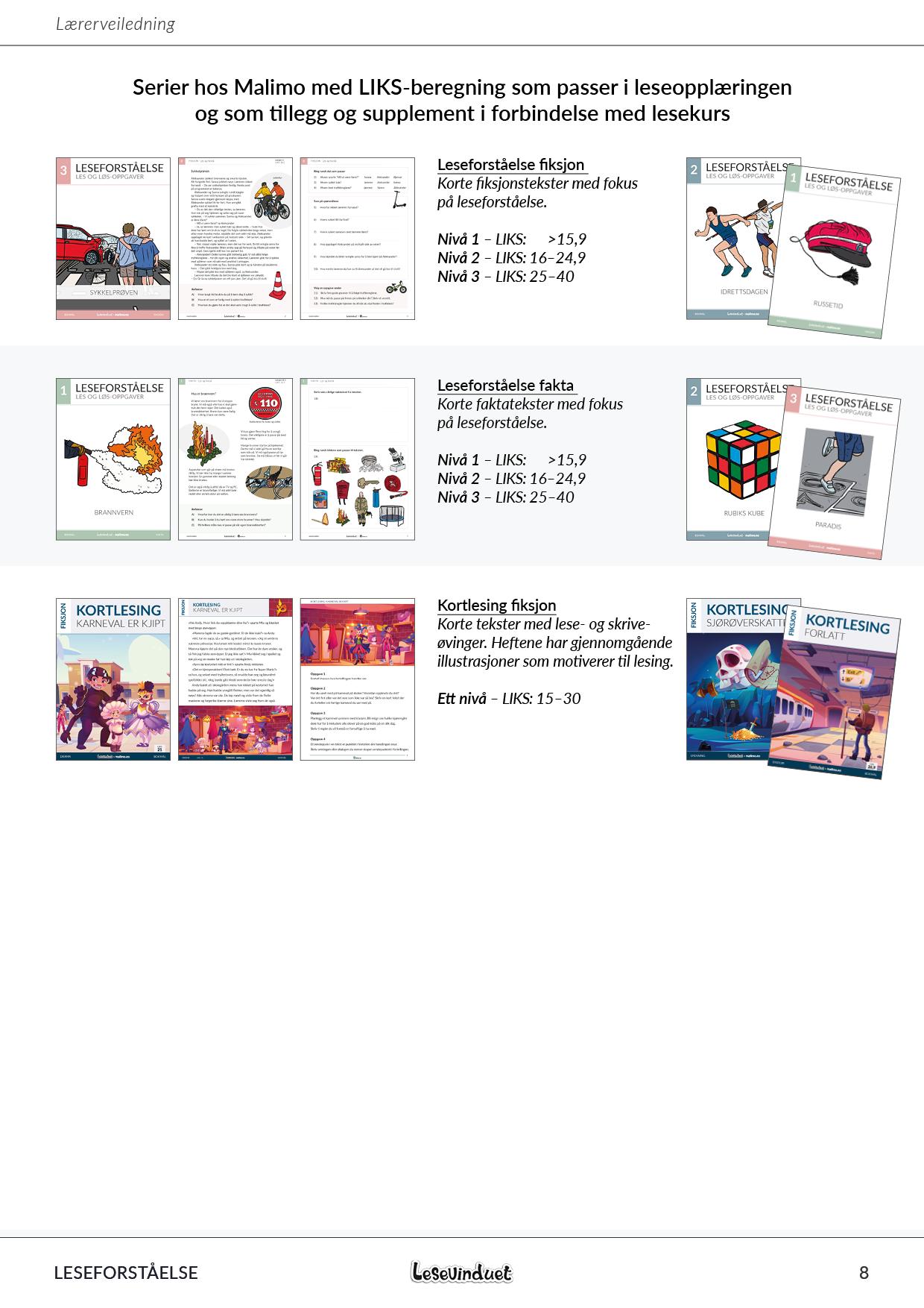 Serier hos Malimo med LIKS-beregning som passer i leseopplæringen og som tillegg og supplement i forbindelse med lesekurs