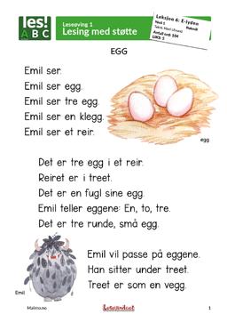 Korte tekster med lese- og skriveøvinger. Heftene har gjennomgående illustrasjoner som motiverer til lesing.