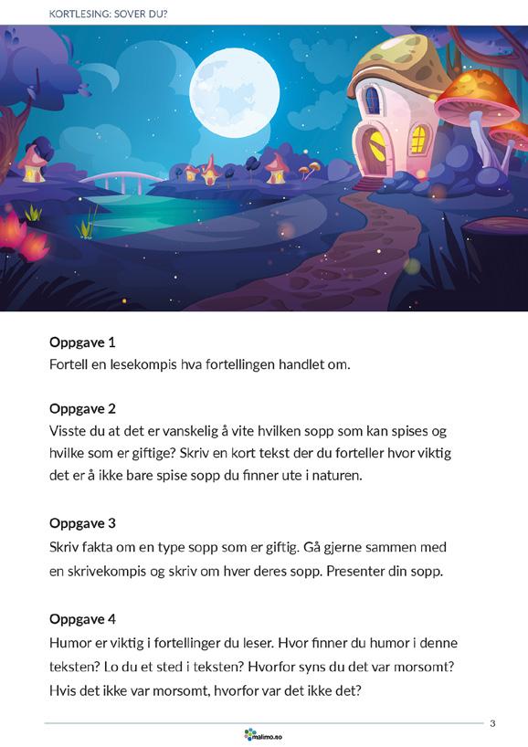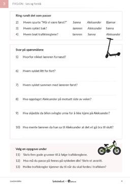 • Spørsmål til teksten, fra eksplisitt innhold til tolkning, vurdering og begrunnelse med tekstbevis.