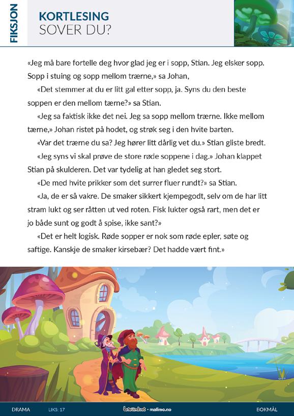 Korte fiksjonstekster med fokus på leseforståelse.