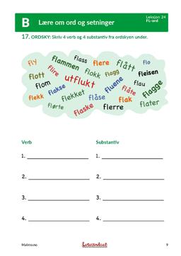 Oppgavene inkluderer arbeid med ordklasser og begrepsforståelse. Elevene blir bevisste på hvordan adjektiver skaper presise beskrivelser, hvordan valg av verb styrer tempo, og hvordan bindeord knytter scener sammen. Systematisk arbeid med stikkord og nøkkelord gjør det lettere å hente ut essensen og gir støtte når de skal skrive sammendrag eller nye tekster.