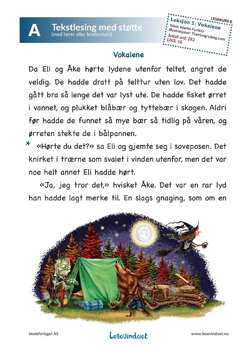 Refsahl har flere oppgavetyper man kan og bør supplere med i gjennomføringen av et intensivt lesekurs i denne fasen. Les kompendiet av Refsahl til slutt (se link) “Tiltak når lesing er vanskelig,” for en bedre forståelse for hvilke andre avkodingsoppgaver og arbeidsmåter/ metoder som kan benyttes i sammenheng med intensive lesekurs.