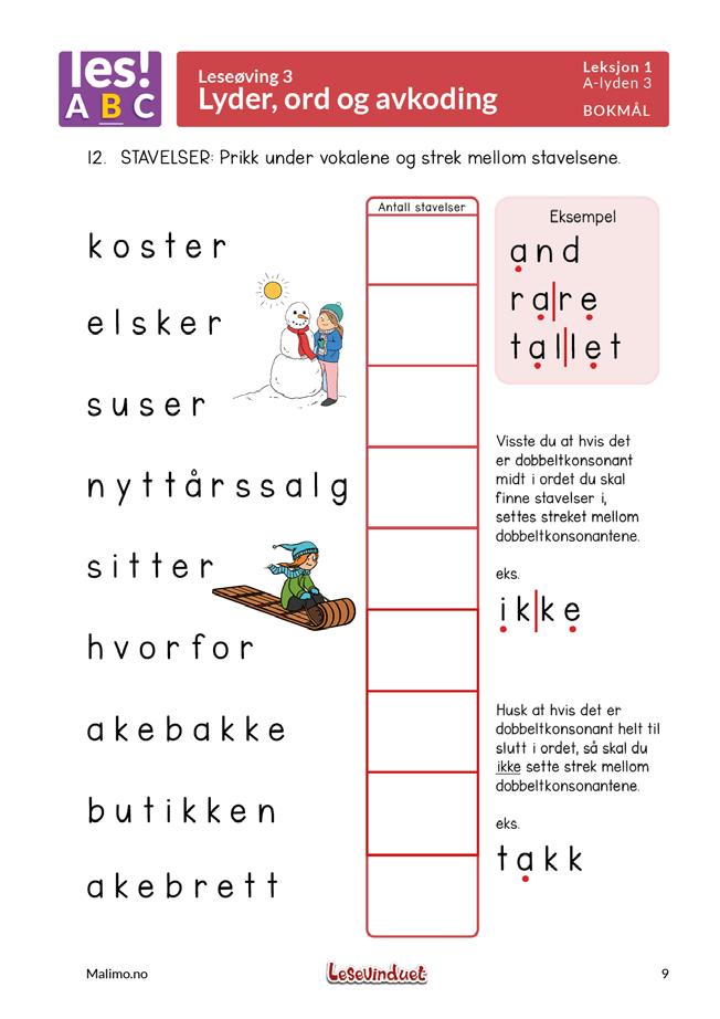 2. Vite hvordan vokaler, konsonanter og diftonger brukes aktivt i stavelsesarbeid (prikk og del).