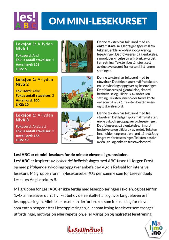 Les! ABC: Mini-lesekurs (1.-4. trinn) 5-8 t/uka i 4-6 uker