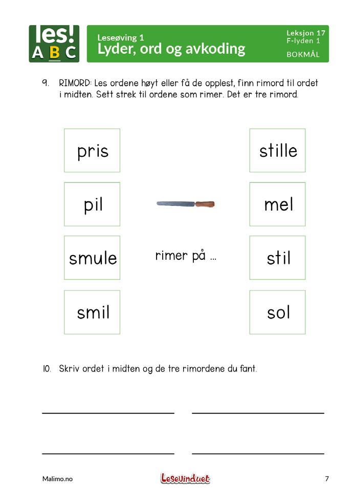 7. Kunne finne rimord og identifisere lyder i ord som endrer seg i uttale.