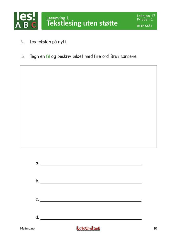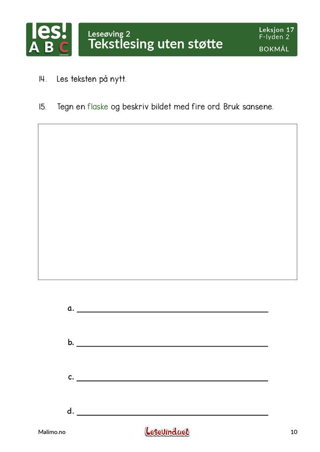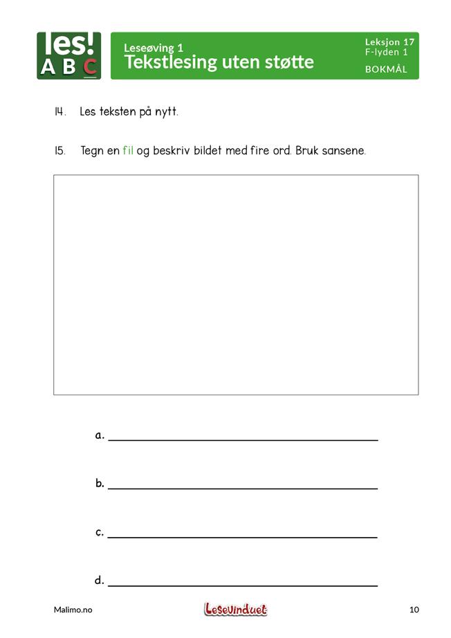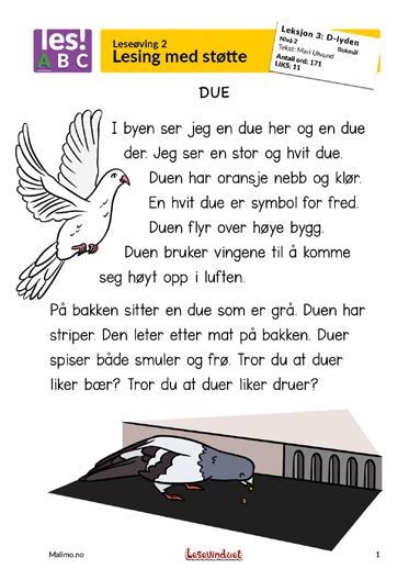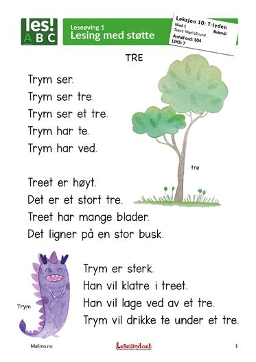 - motiverer og roser god innsats i lese- og skrivetreningen