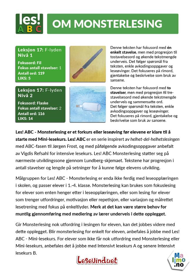 Les! ABC: Monsterlesing (1.-4. trinn) 5-8 t/uka i 4-6 uker