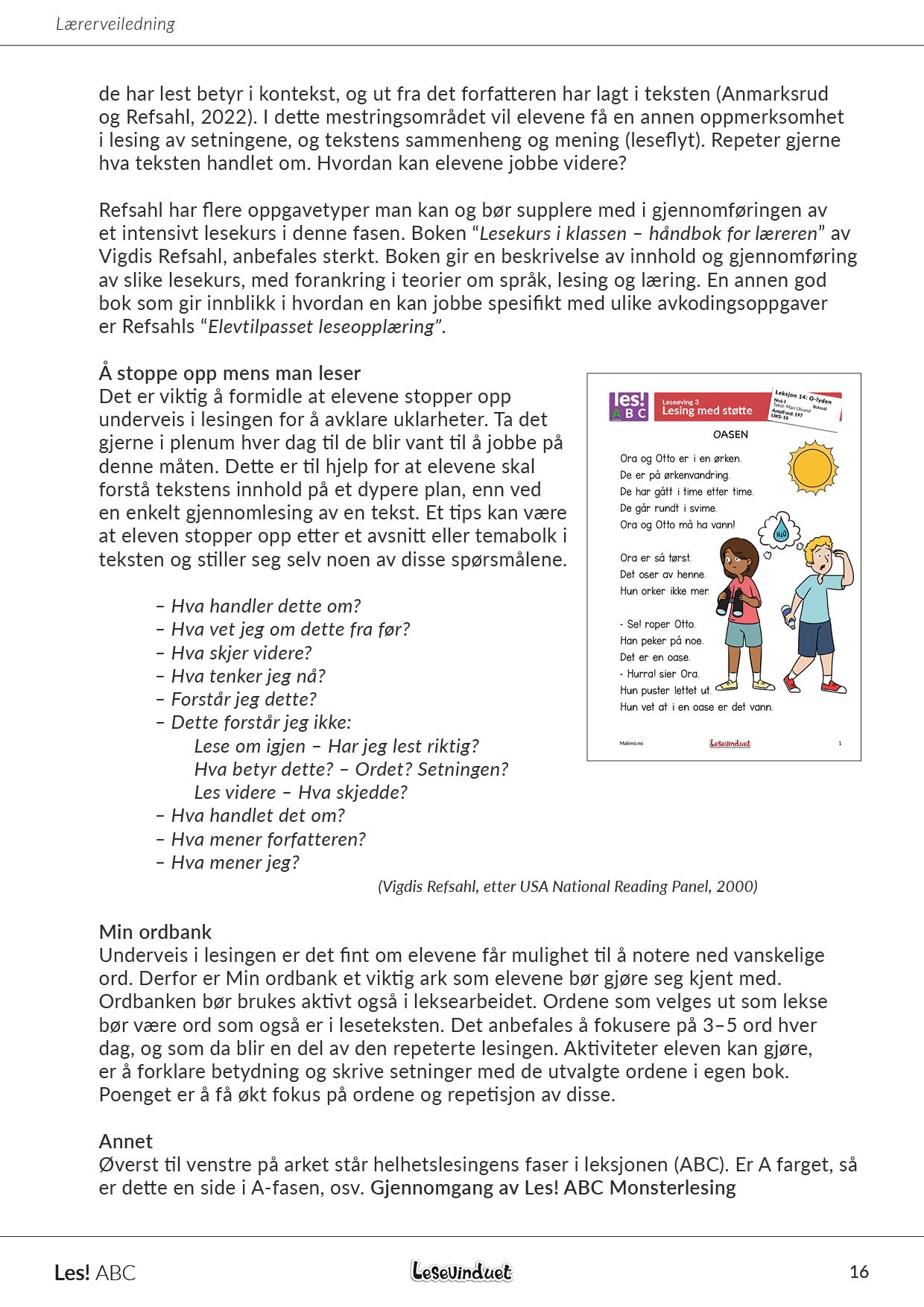 • Refsahl, Vigdis “ Lesekurs i klassen – håndbok for læreren, ” GAN Aschehough. 1. utgave, 3. opplag, Oslo, 2023.