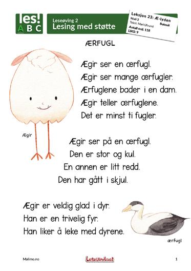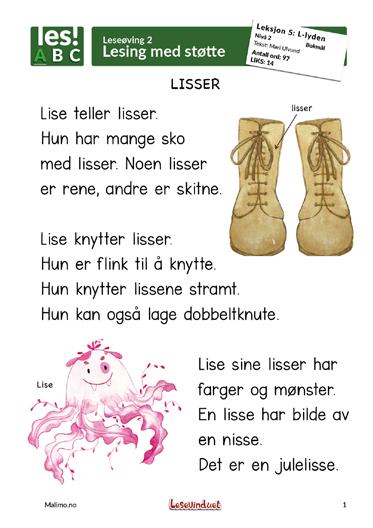 • Refsah, Vigdis. “Leseopplæring på grunnleggende nivåer for unge og voksne” , kompendium.