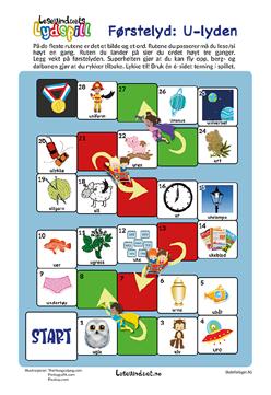 Spill dette stigespillet og les ord eller si hva som står på bildene. Øv på lyder og bokstav-lydforhold gjennom lek.
