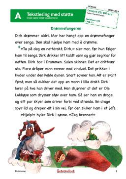 Korte tekster med avkodingsoppgaver.