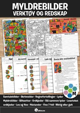 Temabaserte arbeidshefter med egen tekst og avkodingsoppgaver i tillegg til tekstoppgaver og fargeleggingsark. VØL-skjema, BISON-ark og tankekart medfølger.