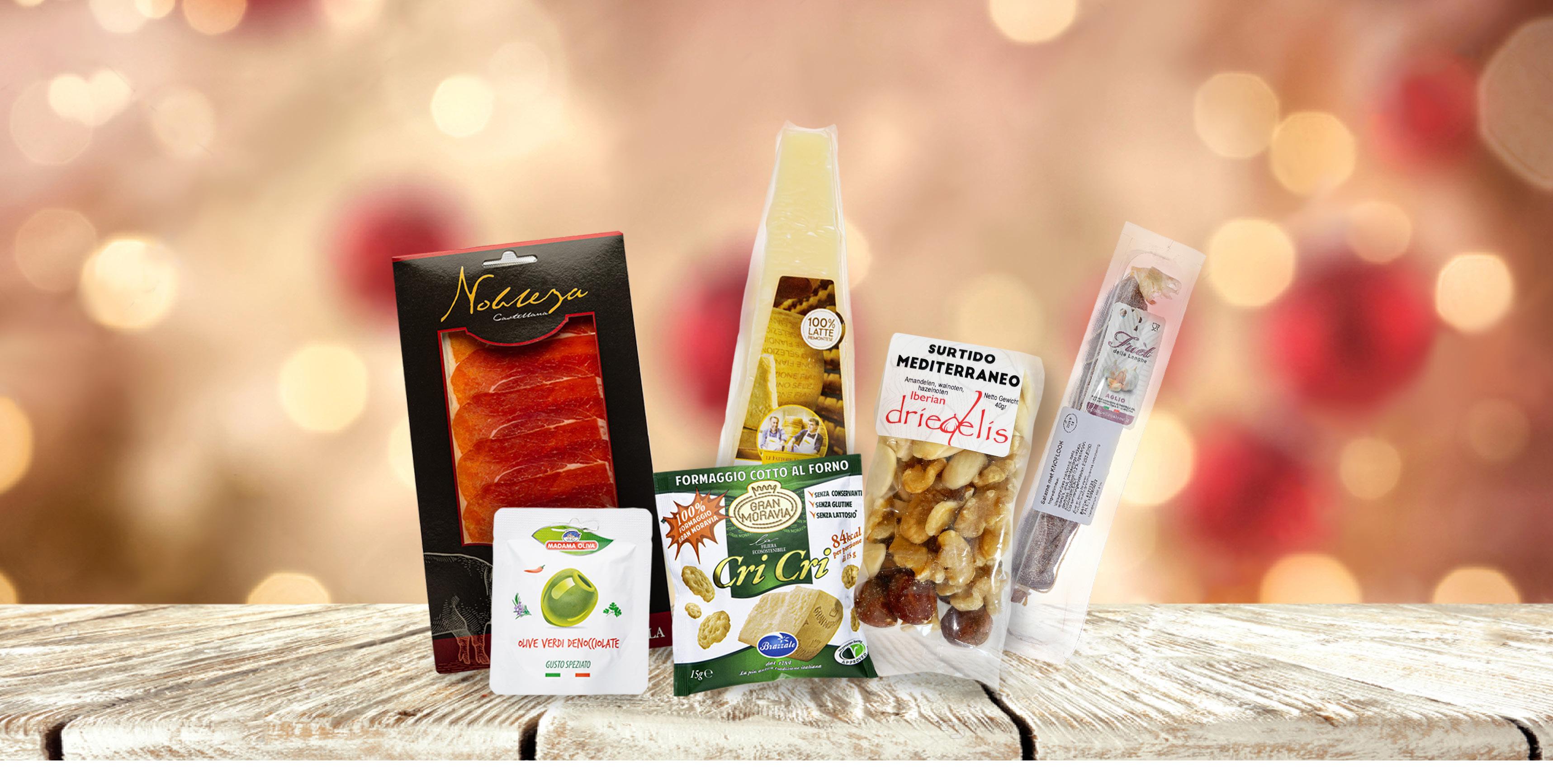 5 2 3 4 1 5 6 Madama Oliva 16000033 Olive Verdi gekruid 30 gr3 Alu. Pouch 40 stuks Gran Moravia 11020083 Cracker Cri Cri Moravia 15 gr4 Alu. Pouch 40 stuks De Juan 18000122 Mediterrane Mix Rauwe Noten 40 gr5 Flowpack 20 stuks Chiapella 10000106 Fuet Aglio (single pack) 100 gr1 Flowpack 20 stuks Hartig Nobleza 10000102 Jamon Serrano gesneden 45 gr2 Vacuum 8 stuks Fiandino 11000043 Formaggio Duro Fiandino Riserva 100 gr6 Vacuum 1 stuk