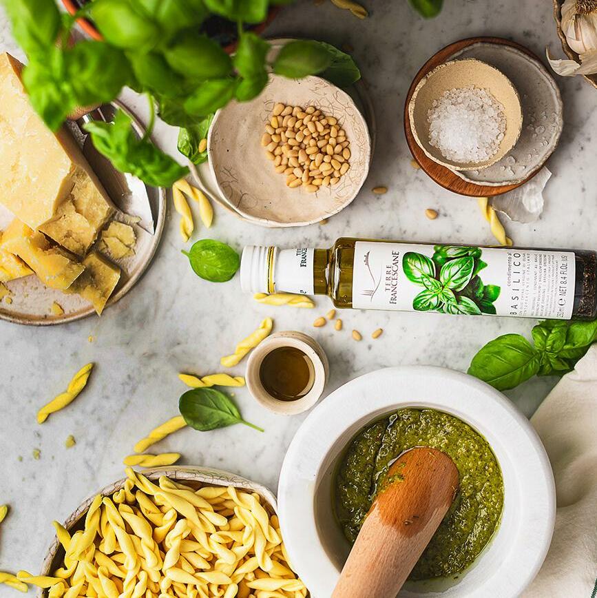 Een gezonde olijfboom levert elk jaar zo’n 5 tot 10 liter olijven. Het grootste gedeelte van de olie komt uit het vruchtvlees en 5% wordt uit de pitten geperst. Eén boom zorgt voor 1 à 2 liter olijfolie. Het hebben van een hele boomgaard aan karaktervolle, oude olijfbomen is dus een kostbaar bezit. Sinds dat moment is extra vierge olijfolie het ‘ingrediënt’ van het leven van Terre Francescane geworden: het heldere groen is de kleur van onze dagen, de geur die ons doet ontwaken en de fruitige smaak, de smaak van onze reis.