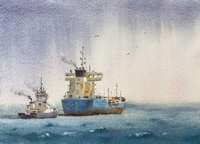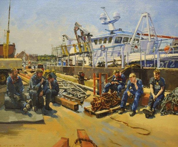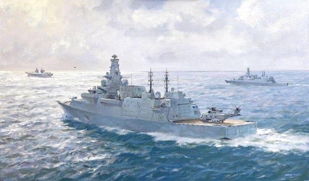 Many of our artists have their work displayed on walls throughout the world. The RSMA has connections with commercial enterprises and shipping organisations in the UK. In the past the society has had a strong association with the Royal Navy. This link has been recently rekindled. The building of a new City Class frigate HMS Glasgow by BAE Systems is being recorded for posterity. We hope that further connections with the Royal Navy will develop in the future.