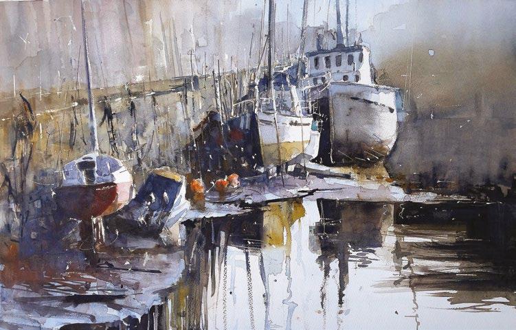 Mark Buck ARSMA will demonstrate how to capture reflections in water using pure watercolour. A finished watercolour painting will be painted from photographic and video references, to show reflections and movement in water within a harbour setting.