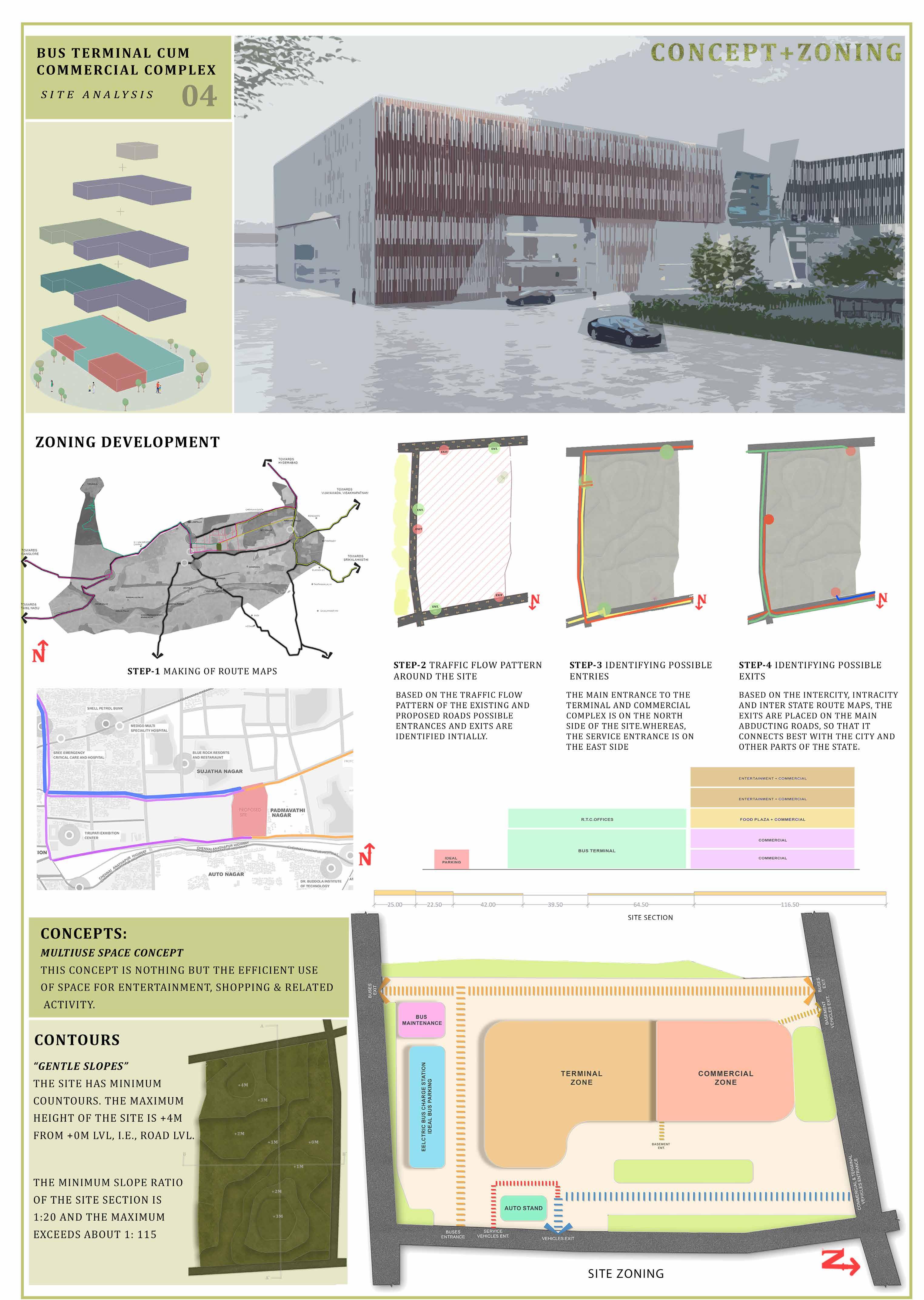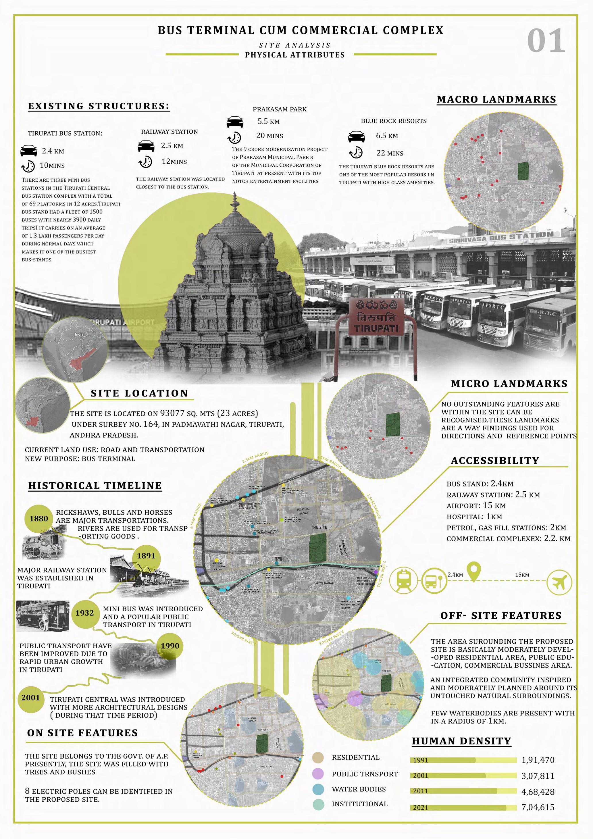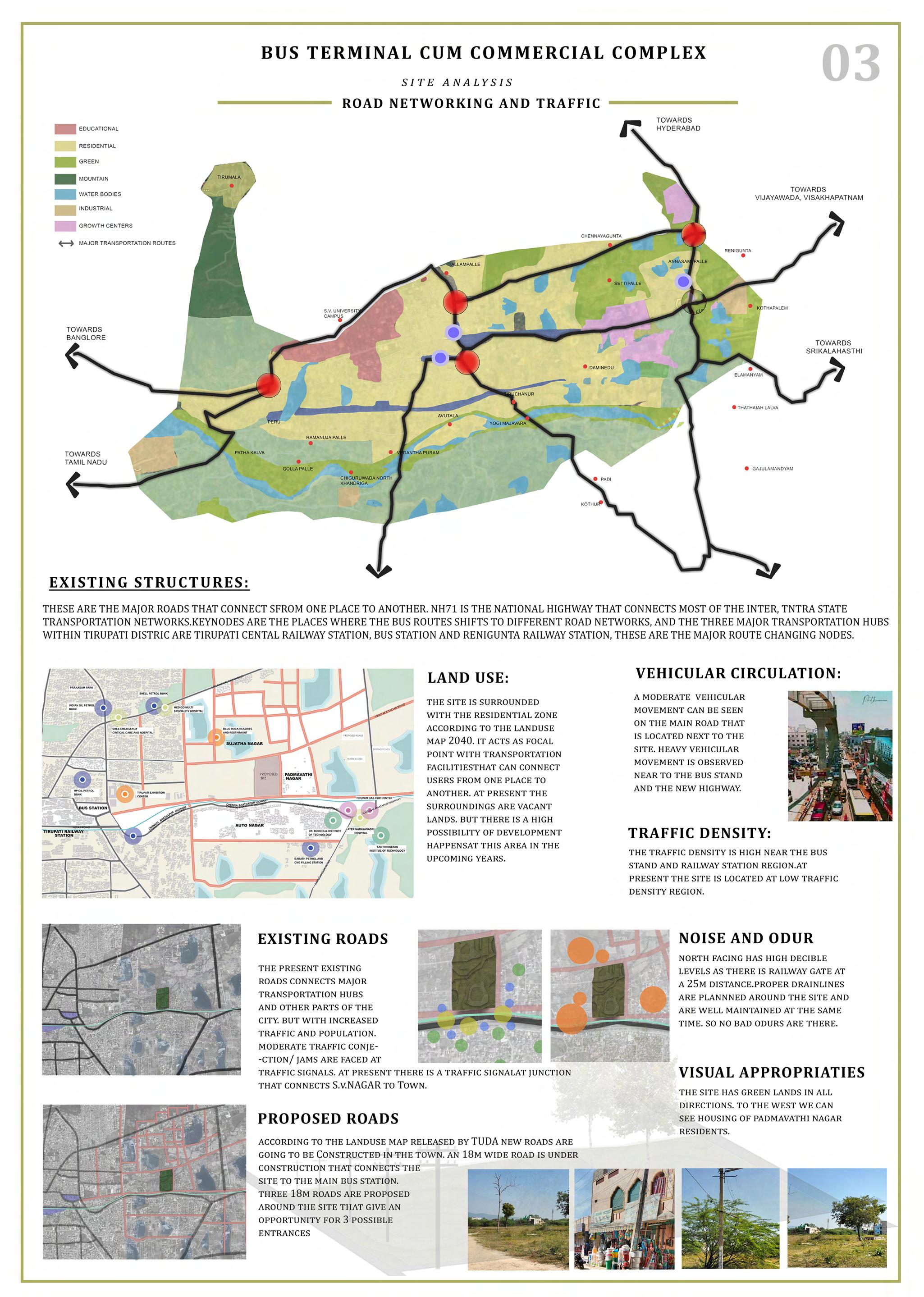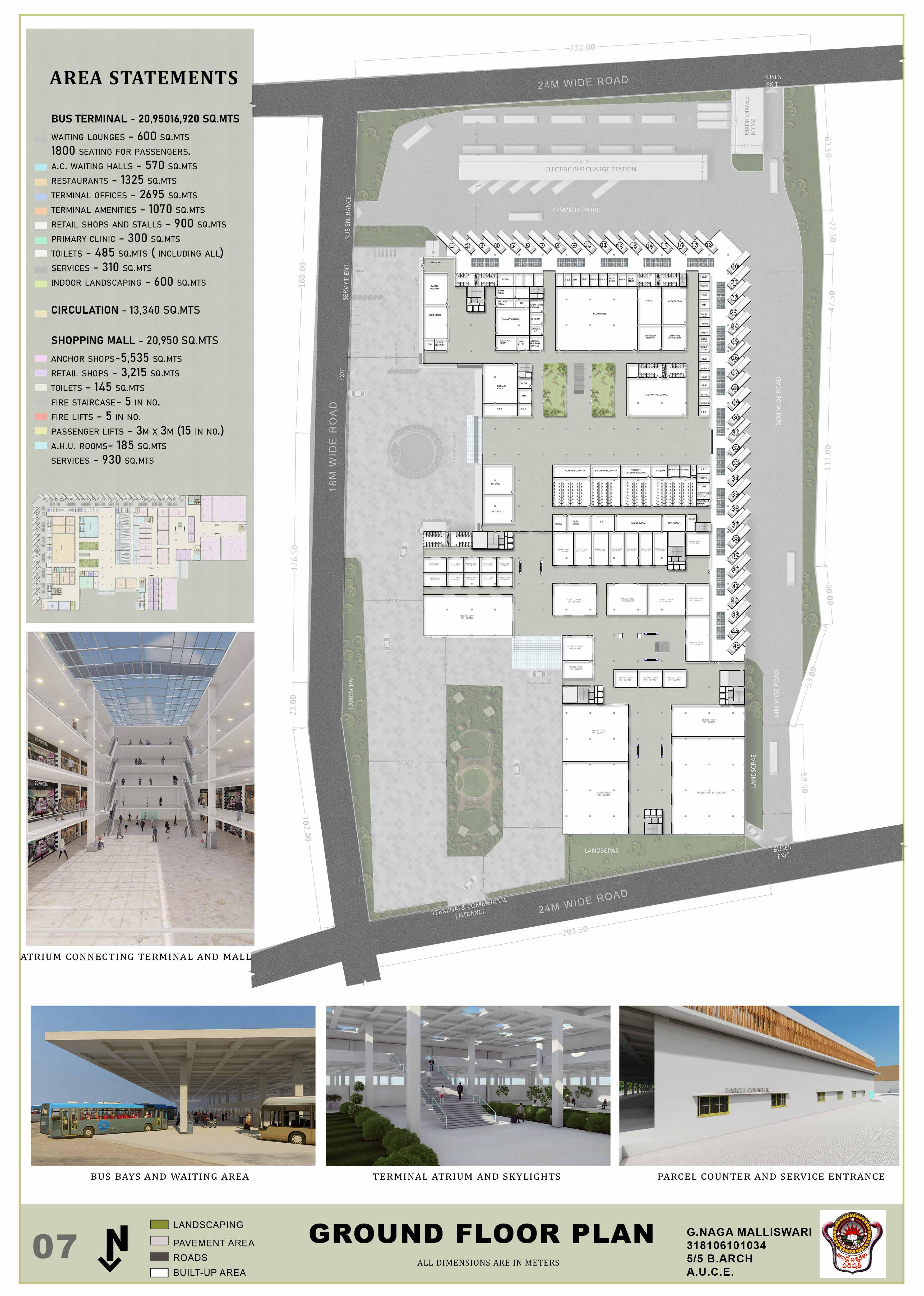 I had the privilege of designing a Bus Terminal and Commercial Complex for my final thesis During my 5th year Final semester in 2023, located in the Indian pilgrim city of Tirupati, which welcomes millions of visitors daily. This project involved conducting thorough research on traffic analysis and program development. Designing a project of such scale significantly expanded my knowledge and experience in architectural concepts and large-scale design planning.