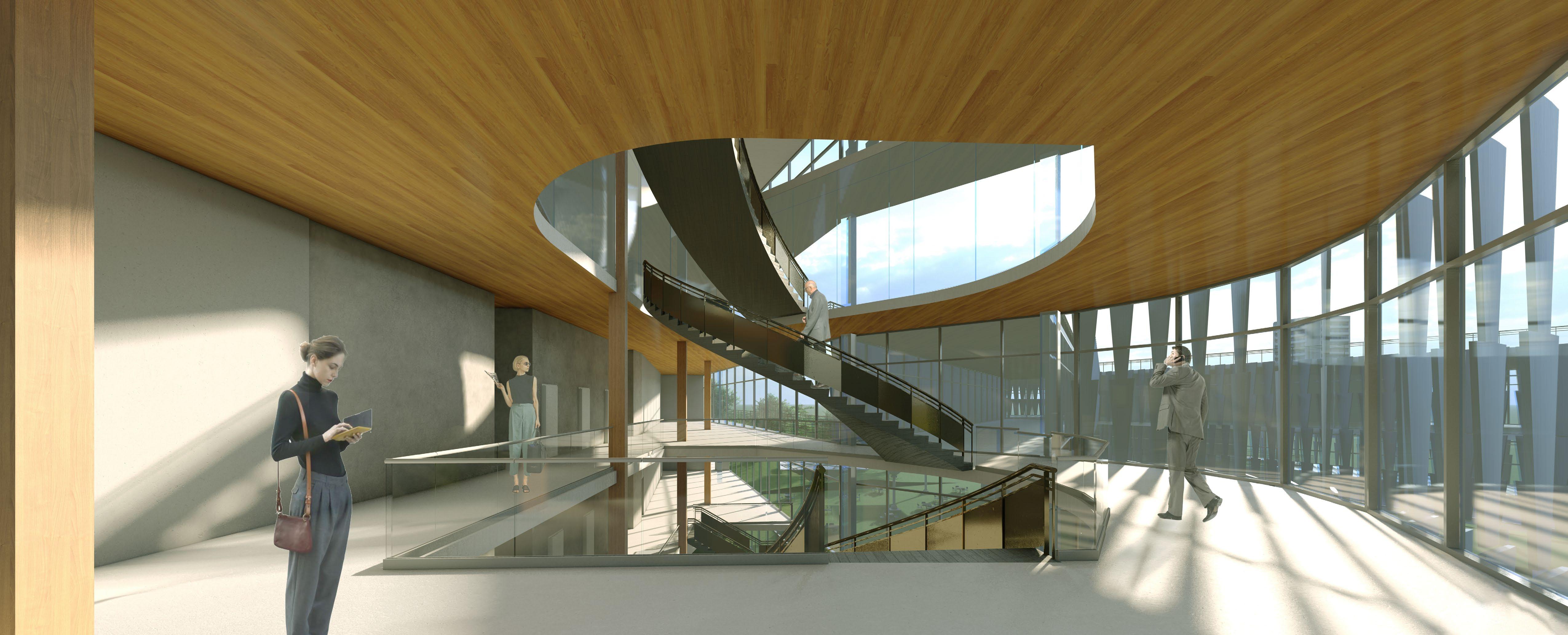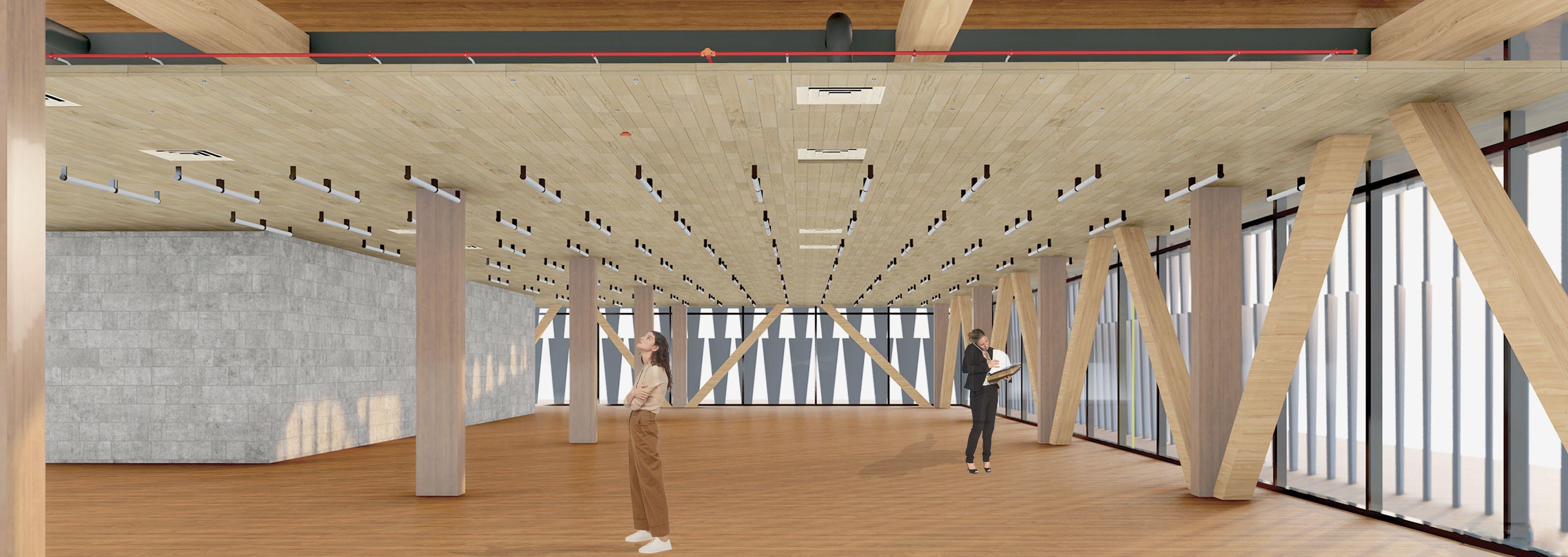 Materials Used - Mass timber, Steel, Recycled Iron, Glass and Concrete.