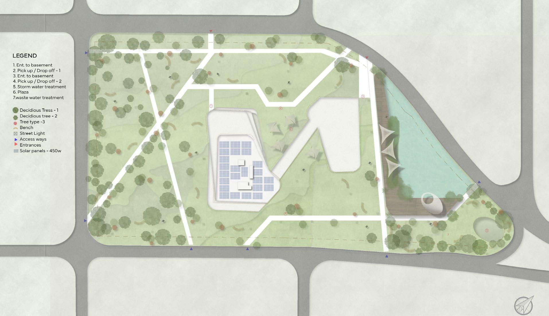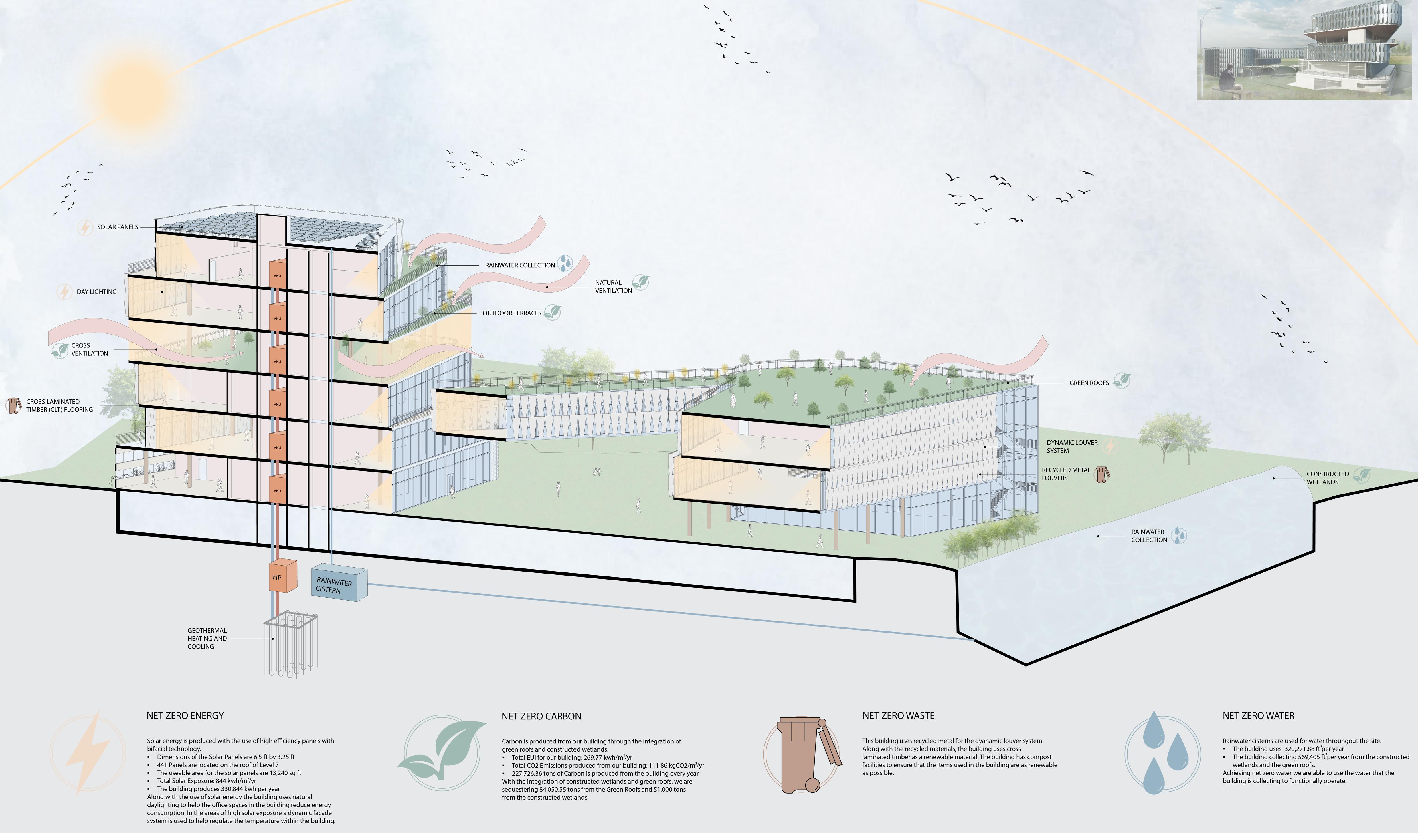 Net zero energies - Solar energy, Green terraces, Water bodies