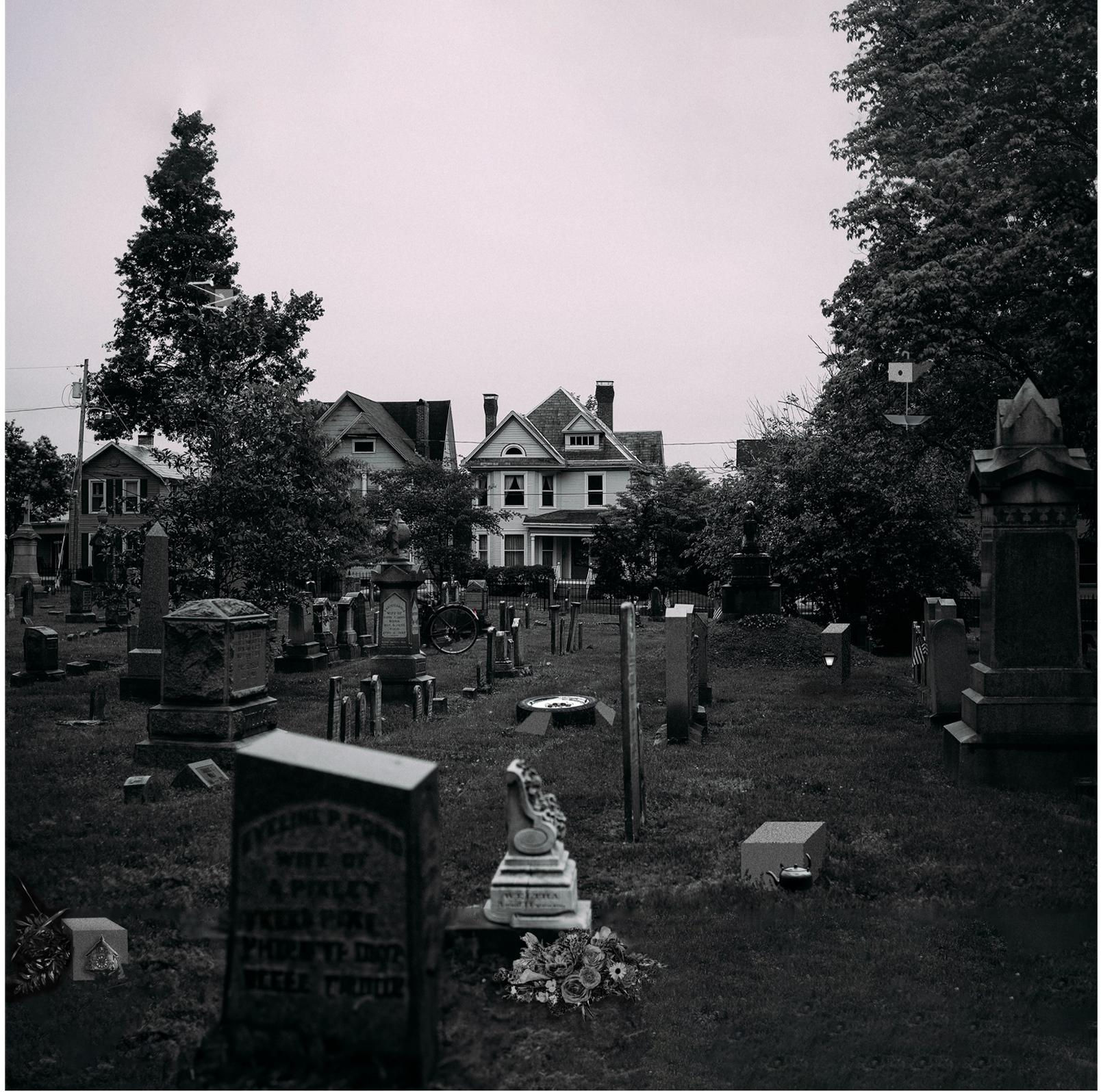 THE MOMENT WHERE THESE TWO CONTRASTING ELEMENTS MEET, IS AN OPPORTUNITY TO CREATE NEW HABITATS FOR VARIOUS SPECIES LIVING ON THE GROUNDS OF THE CEMETERY---THIS EXAMPLE BEING LOCATED IN VIENNA, WV. ADDITIONALLY, THE CMU BLOCKS HOLD SPACE ON THEIR SURFACES TO BE INGRAINED WITH MEMENTOS, ACTING AS MEMORIALS IN DEDICATION TO THOSE WHO HAVE PASSED.