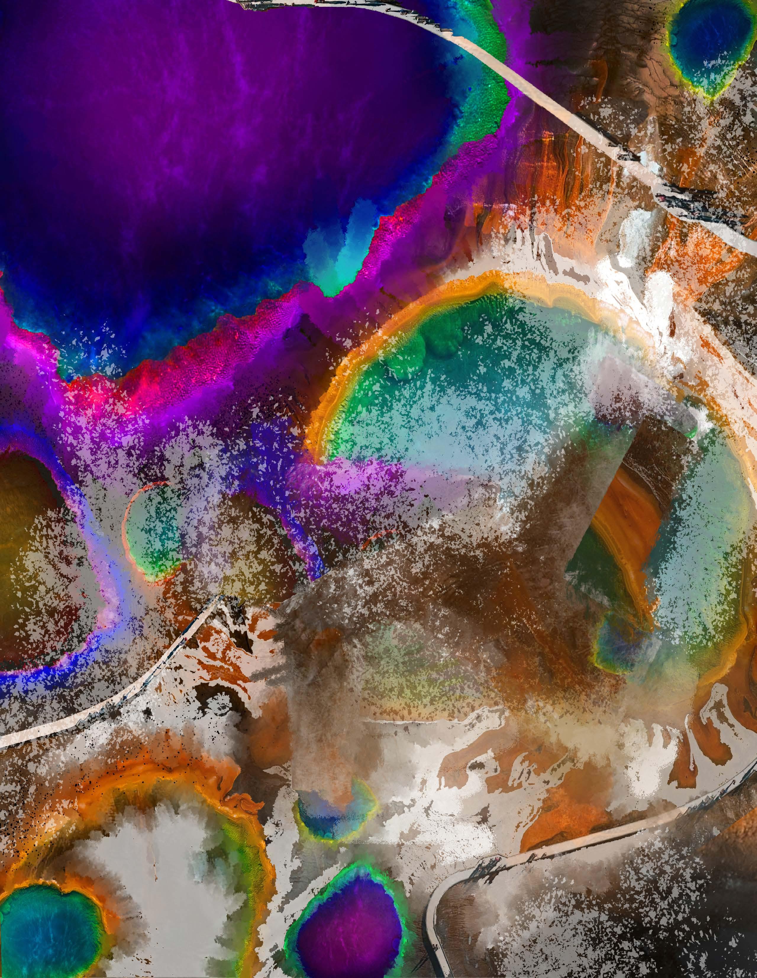 Material erosion does not have to occur chaotically. A sense of control is created by channels in the white cement, where the colorful chalk art can flow.