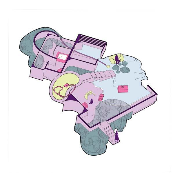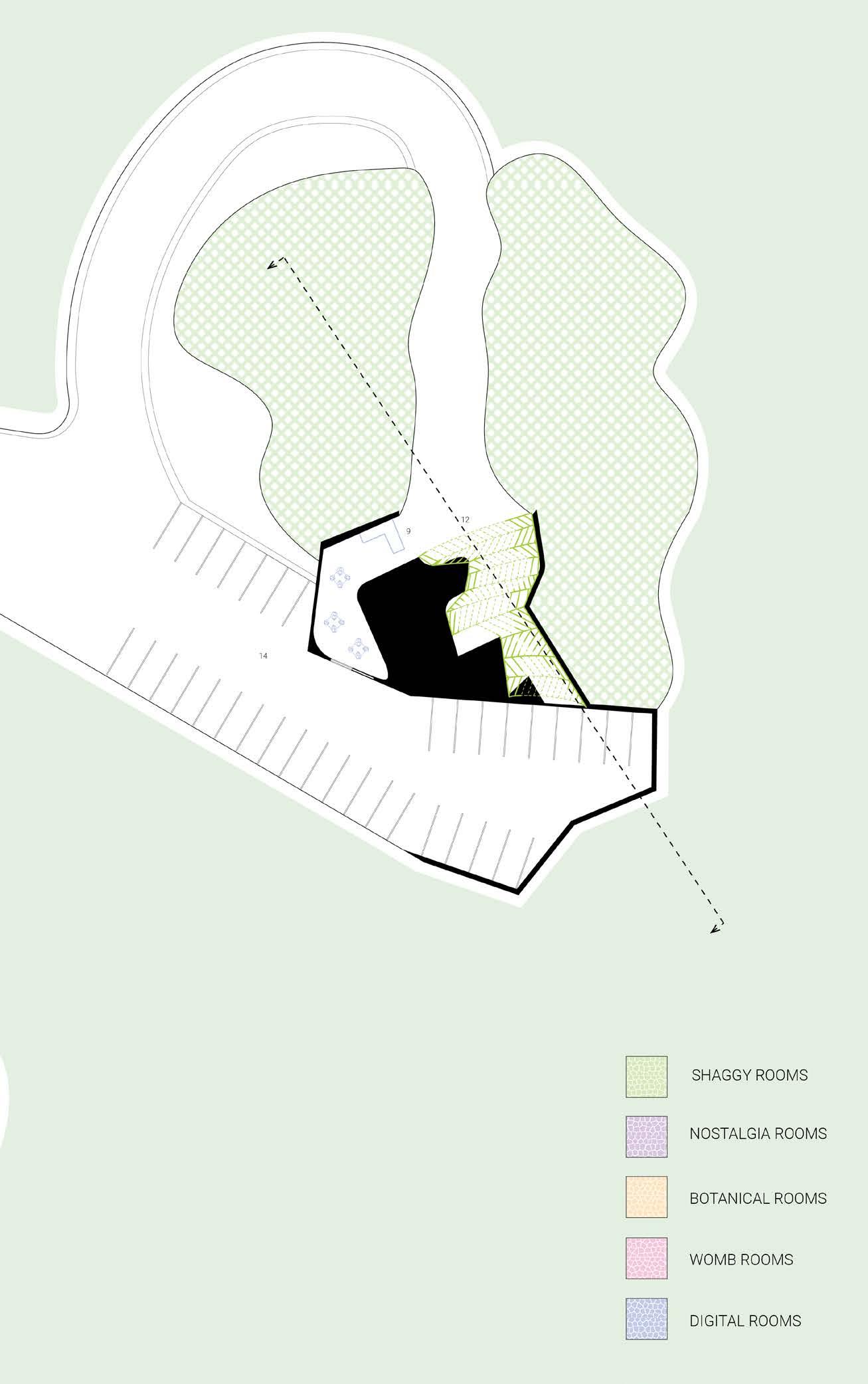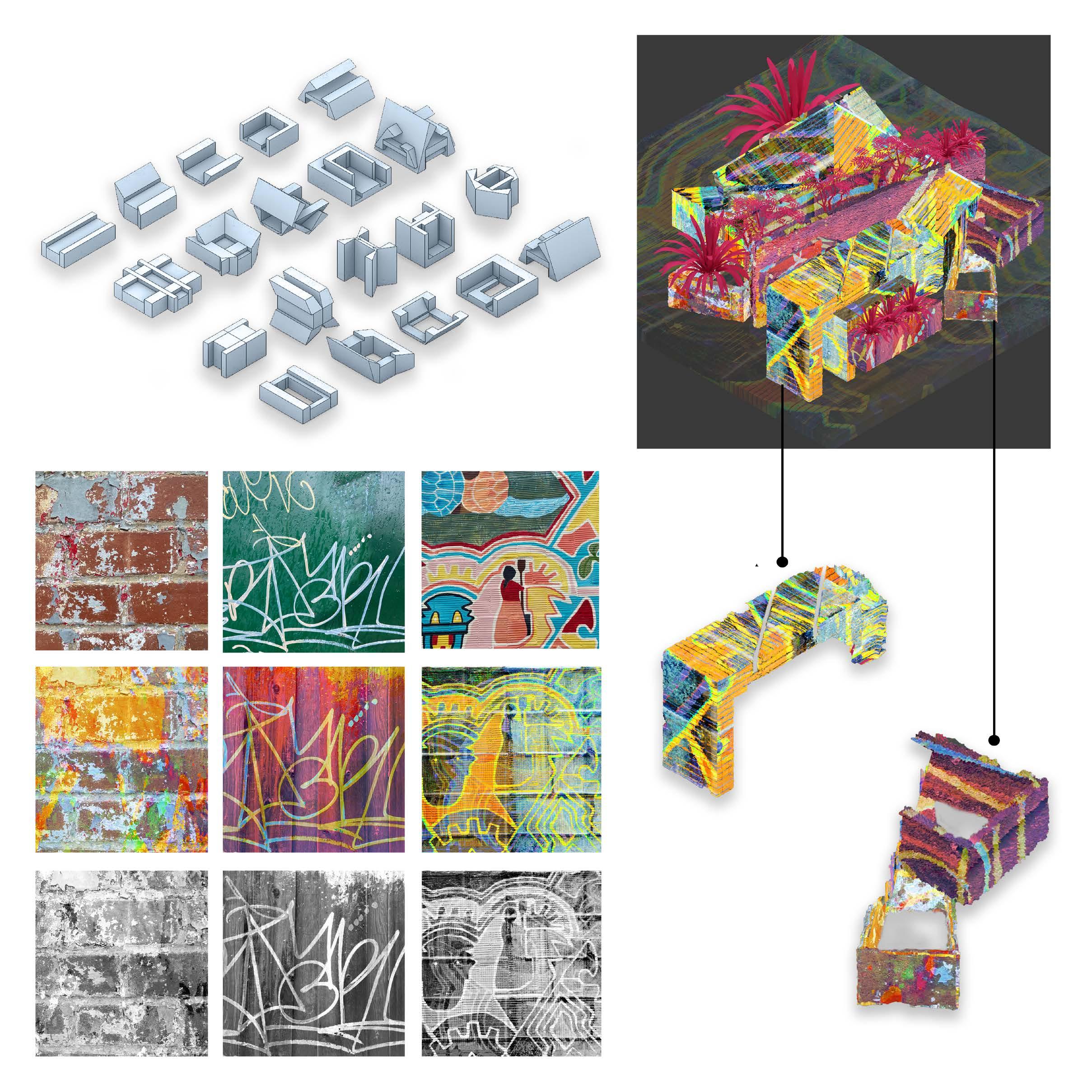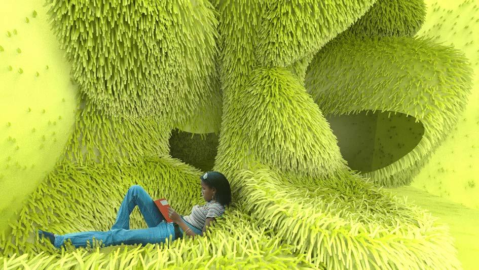Creating zoning rules for each type of geometry can start to create a design logic. For example, larger clusters of the curved pods indicate an area of high traffic and elevated surfaces.