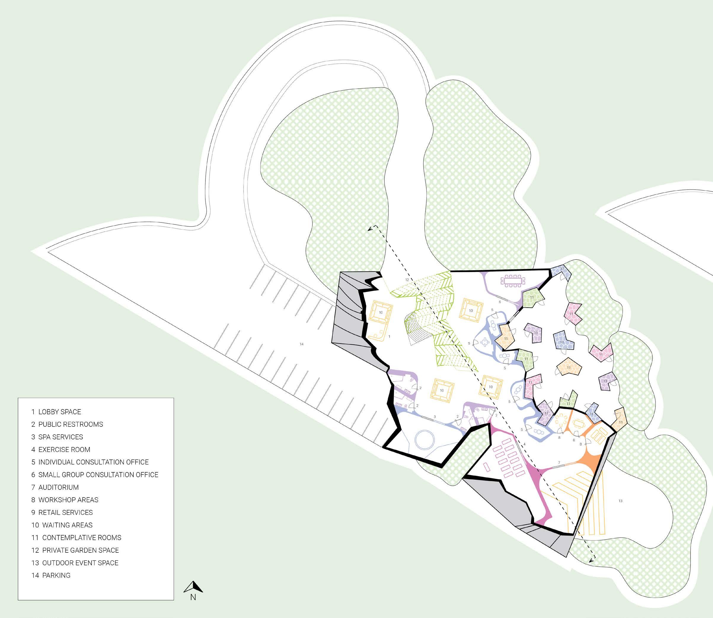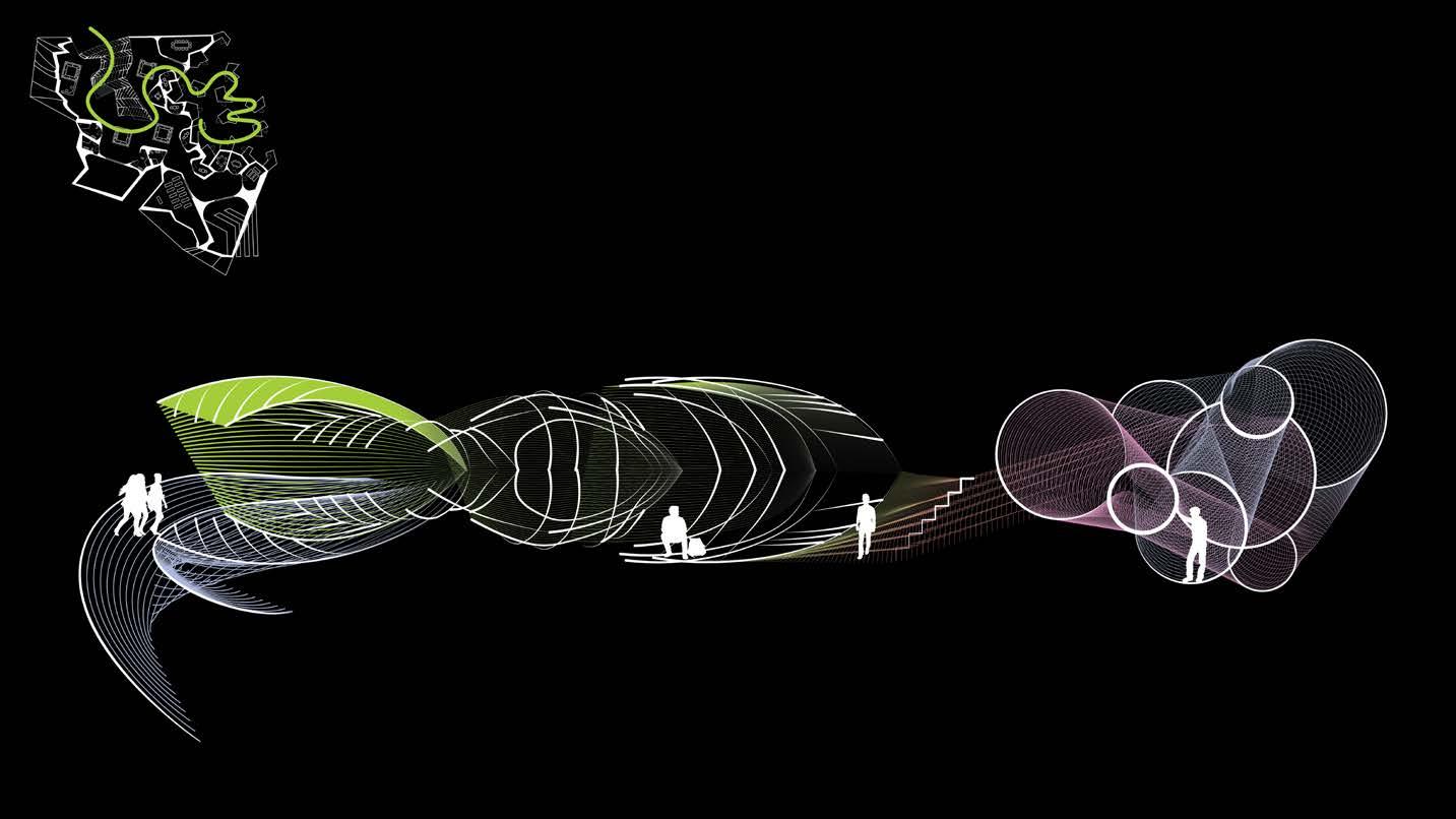 Understand the needs of the occupants. In contrast to the large community areas, create individudal contemplative rooms that evoke various emotions. It is not certain how people will respond in such spaces, so create flexible spaces that mimic the vastness of the human brain.