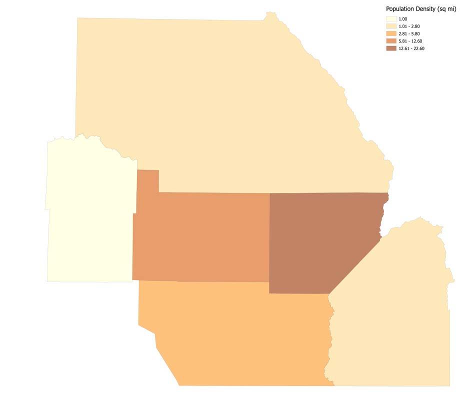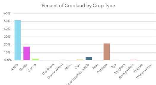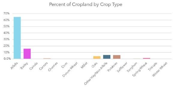For this project I created and analyzed maps and satellite imagery and researched food systems visualization and engagement processes. I used asset mapping in collaboration with my client partners to identify important locations and pathways for food in the San Luis Valley. I also used USDA CropScape data to quantify crops grown by area both for the Valley as a whole and within each individual county. I then compared crop areas by percentage to determine which crops were most prevalent during the 2022 growing season.