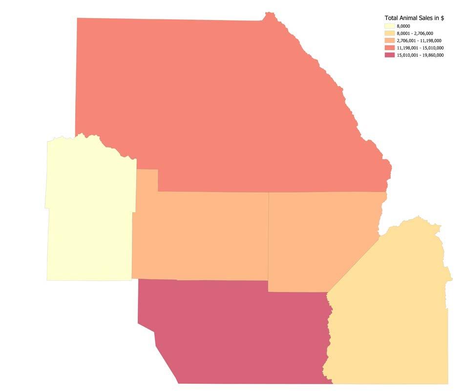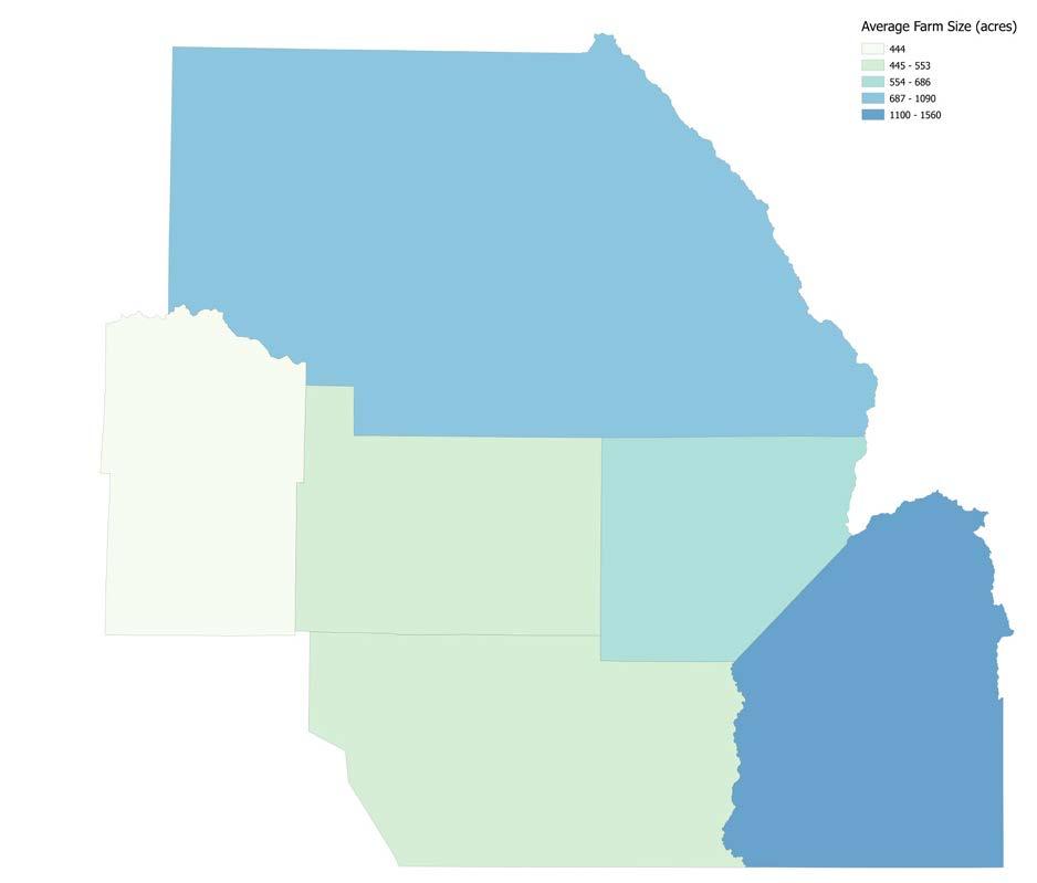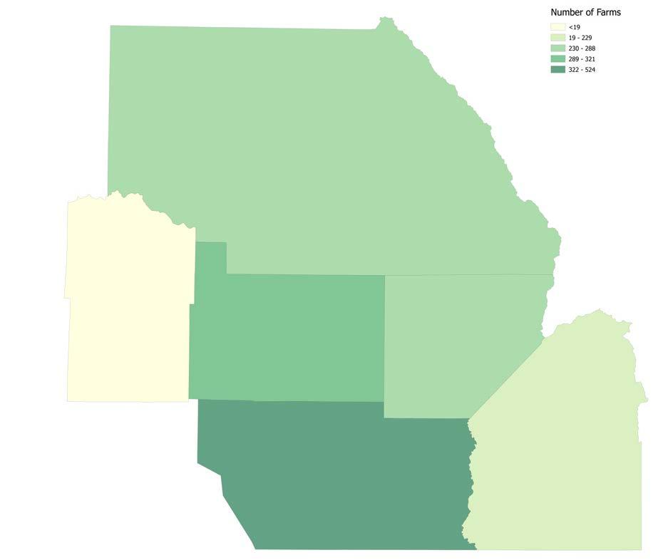Determine the locations of farms and ranches in each county and quantify growing scales along with ownership to consider the effects of animal production on the local foods system.