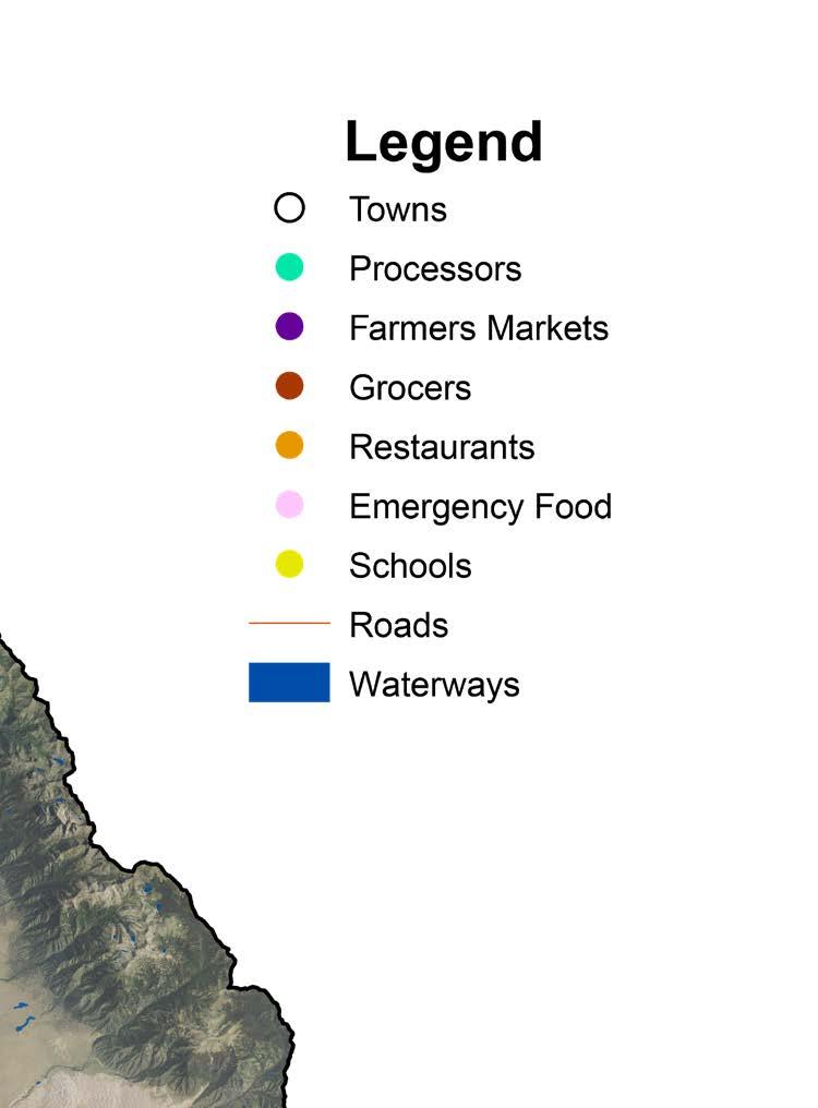 The San Luis Valley includes Alamosa, Conejos, Costilla, Mineral, Rio Grande and Saguache counties in Colorado. Through my partnership with the San Luis Valley Local Foods Coalition I assisted in the Local Food Local Places initiative. The San Luis Valley Local Foods Coalition includes stakeholders such as nonprofits, business owners, government agencies, producers, and individuals. Their director asked me to enhance this project by providing resources for understanding the geography of the local food system during community listening sessions. The Regional Community Food & Agriculture Assessment (CFAA) and a Community Action Plan (CAP) were created by the Local Foods Coalition, Colorado State University, collaborators and New Venture Advisors. These documents were published in Summer of 2023.