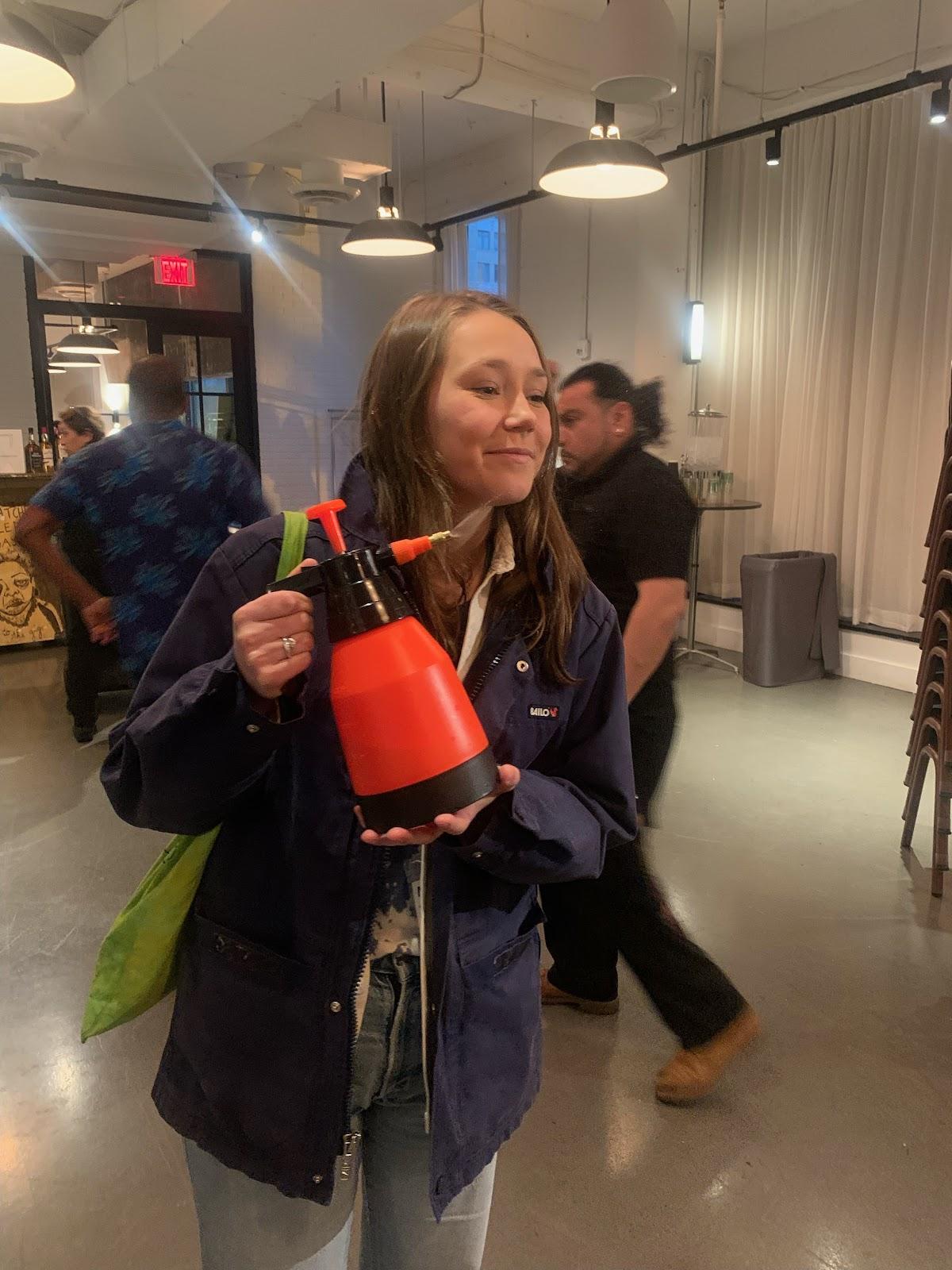 The Corcoran faculty member, Maria del Carmen Montoya (Carmen), was the person I have continued to bump into. She introduced me to her neighbor, Nichole Abrams, and before we knew it, we were at the rooftop bar with gin and tonics in hand, discussing my disgust for the term “symposium” being attached to this weekend. Symposium to me felt like a sterilized business term used to legitimate this gathering in the eyes of those who are not artists. It felt contrived rather than letting the event exist in the more ethereal social practice light to which the programs elicited in and of themselves. I found it interesting that Carmen wrote “The Corcoran at GW” on her name tag. I was personally trying to feel into the space beyond my titles and affiliations outside.