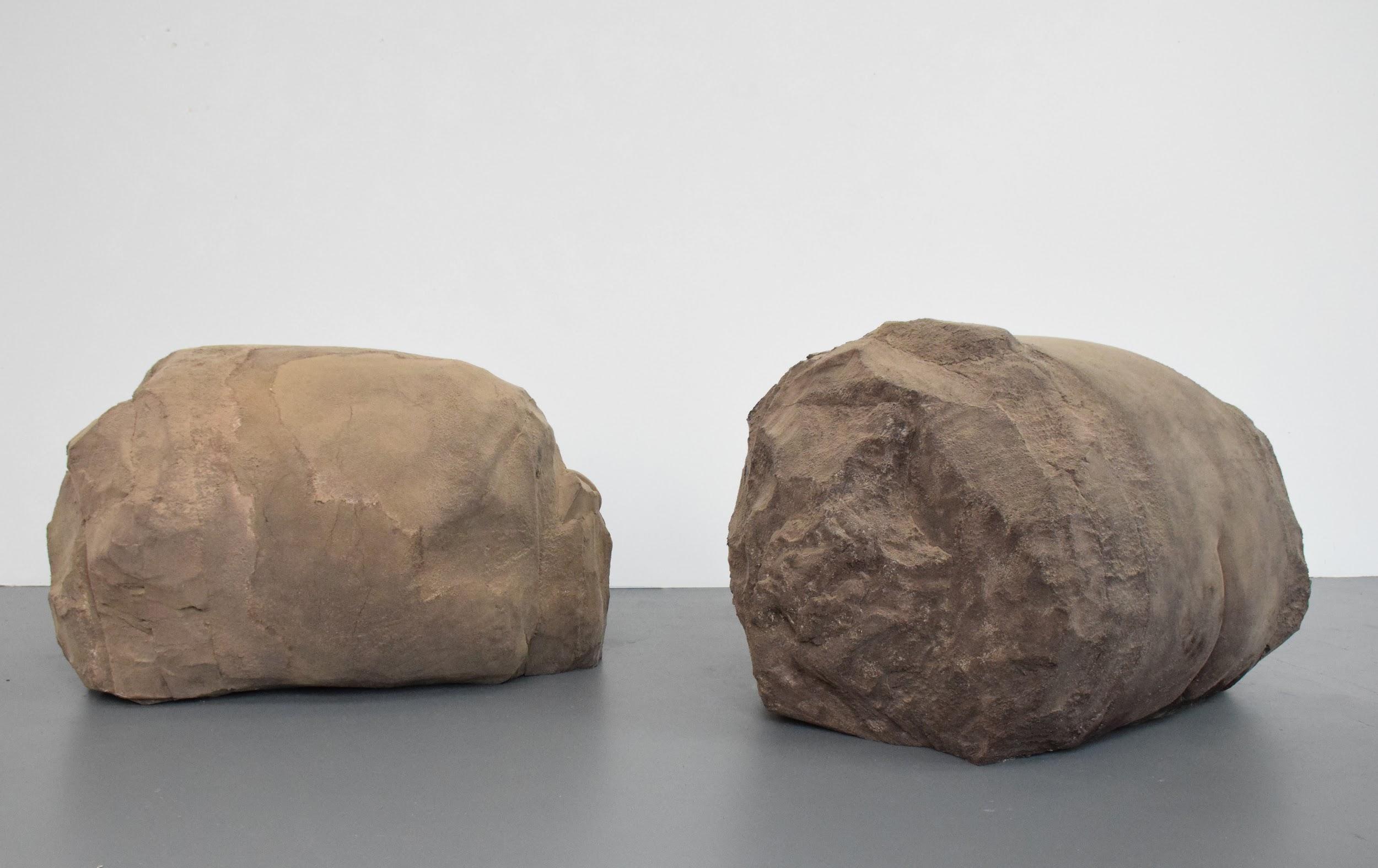 Mallory Kimmel, The Man I Want (left) Boulder II (right), 2019, upholstery foam, fabric fibers, wood Photo credit: Wenyi Tang