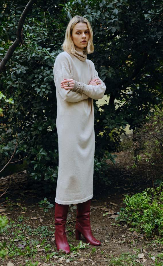 Cowl neck dress in pure cashmere English ribbed wide roundneck in pure cashmere Boots in nappa