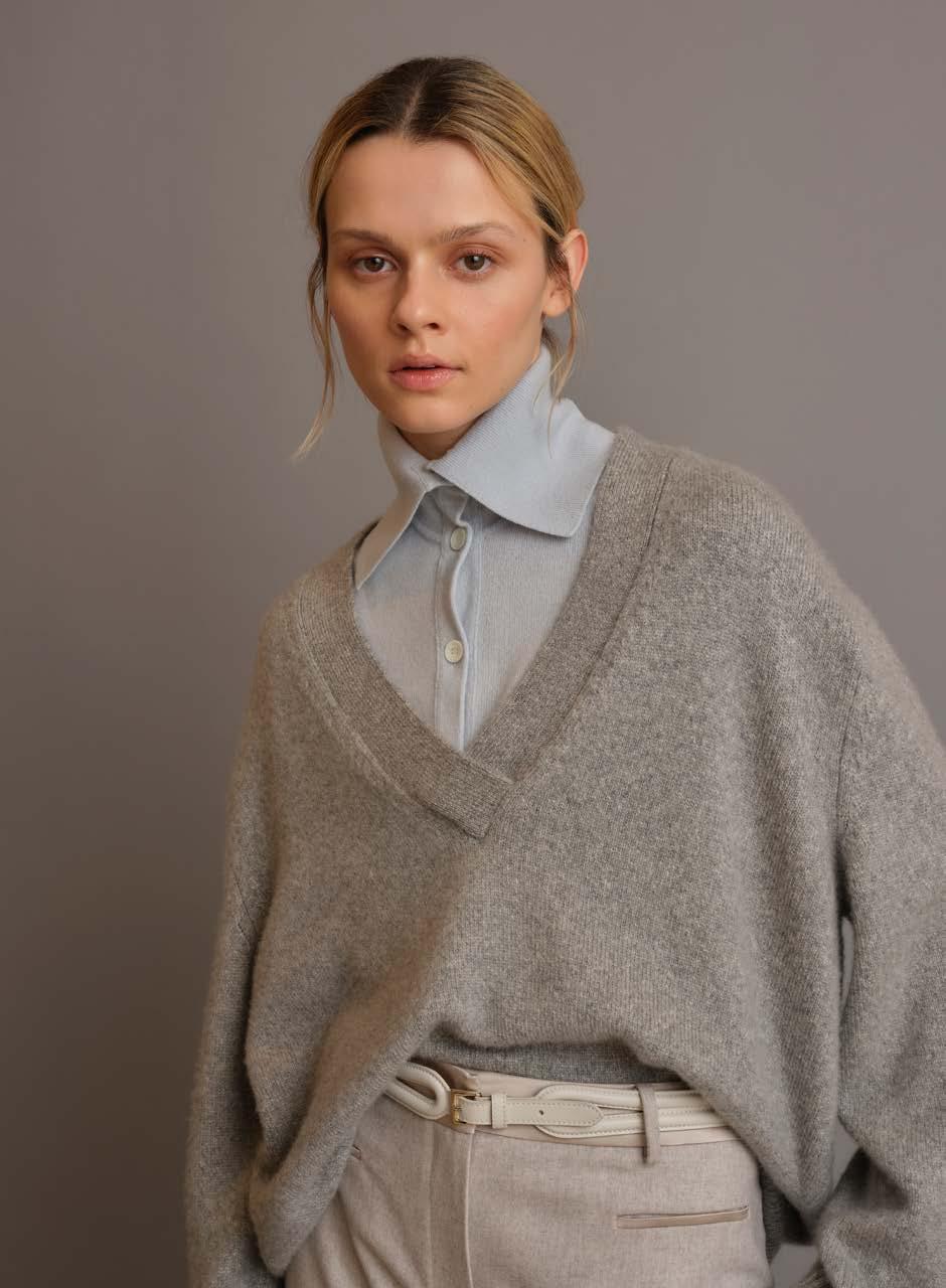 Maglie, abiti e accessori nascono dall’intreccio di punti preziosi; il resto è pura emozione Shirts, dresses and accessories are born from the intertwining of precious yarns; the rest is pure emotion