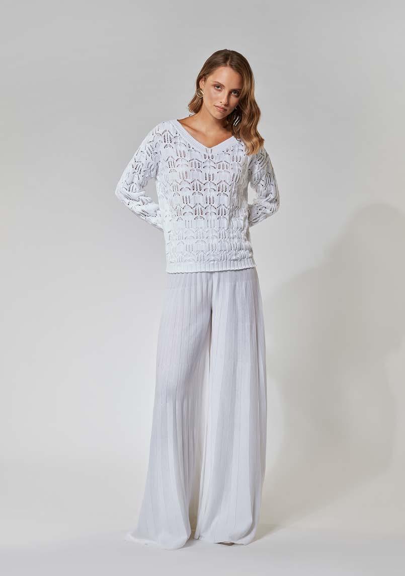 Scollo a V in cotone cordonetto Pleated trousers in Makò cotton V neck in cotton