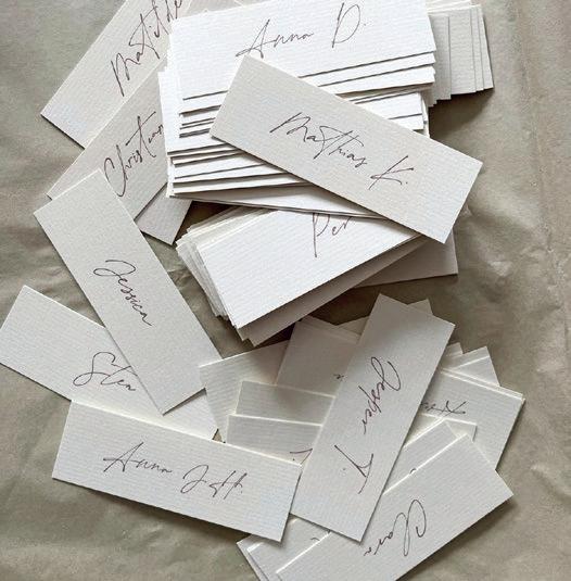 Bånd med navne som bordkort (min. 40 stk.) - 30 kr. stk. / v. kun folie u. bånd - 15 kr. stk.