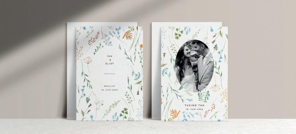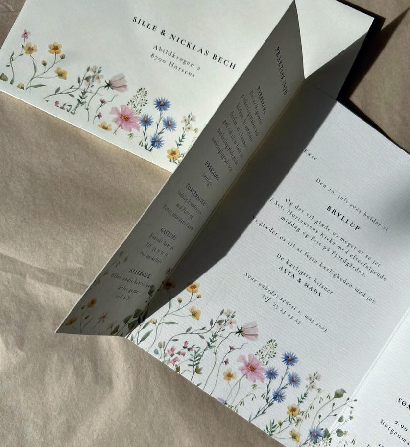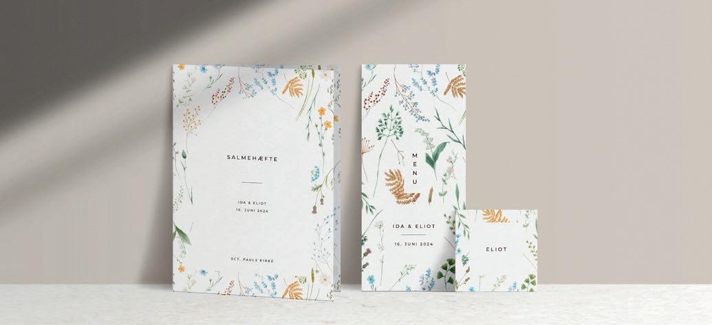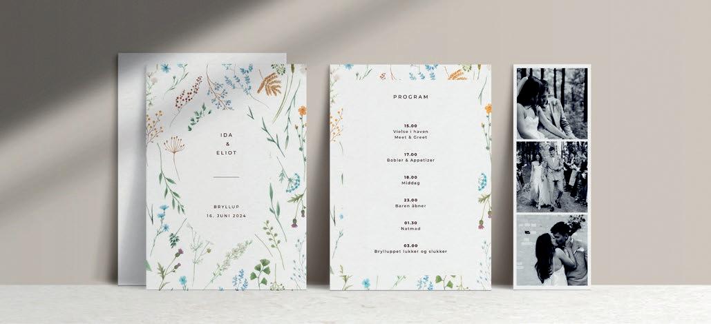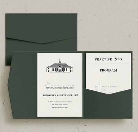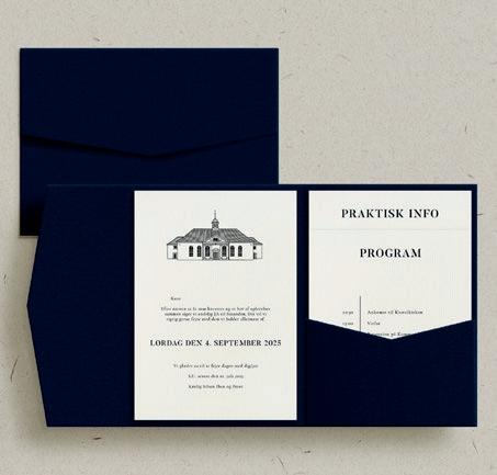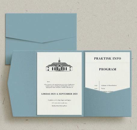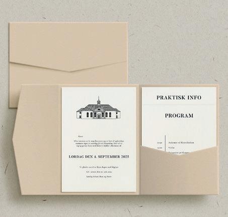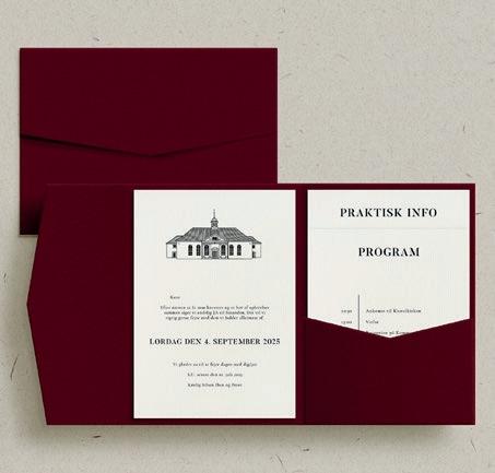 Bemærk at samtlige af vores invitationer kan foldes ud til en serie, hvor designet går igen på fx bord-, menukort, bordoversigter, salmehæfter, takkekort mm.