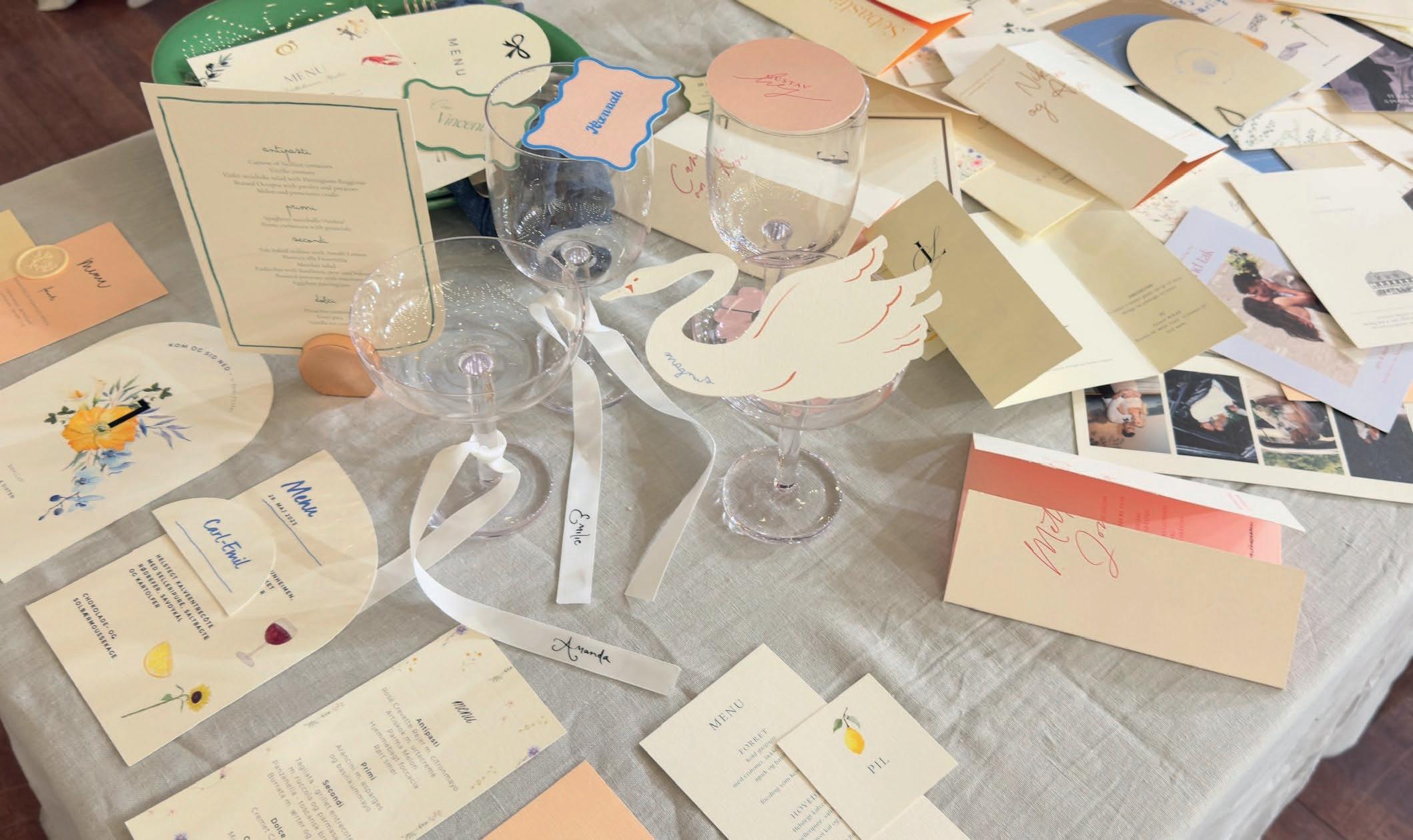 Vi vil glæde os over, at hjælpe jer med at skabe lige præcis de unikke papirvarer, I drømmer om til jeres store dag.