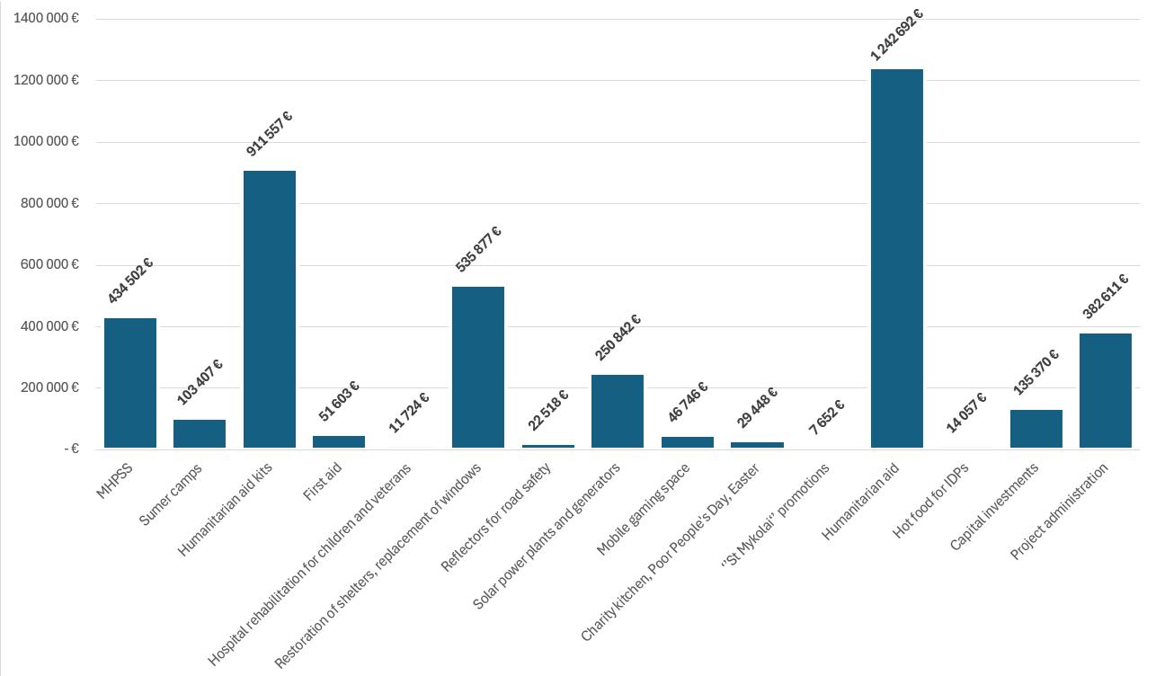 The purpose of this cooperation is to provide prostheses and treatment to patients injured during the war quickly and free of charge. The amount of investment reached EUR 1 million, 800 thousand of which is the cost of component materials for the production of prostheses, 180 thousand - the cost of a mobile workshop with equipment for two workplaces.