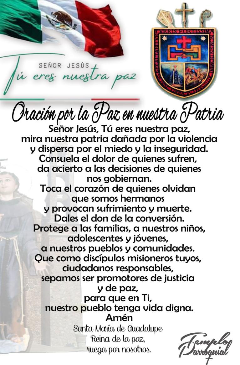 Mons. Don Fidencio López Plaza X Obispo de la Diócesis de Querétaro, nuevamente vuelve a invitarnos a unirnosenoraciónporlapazdenuestros,pueblos,ciudades, estadosypaís.