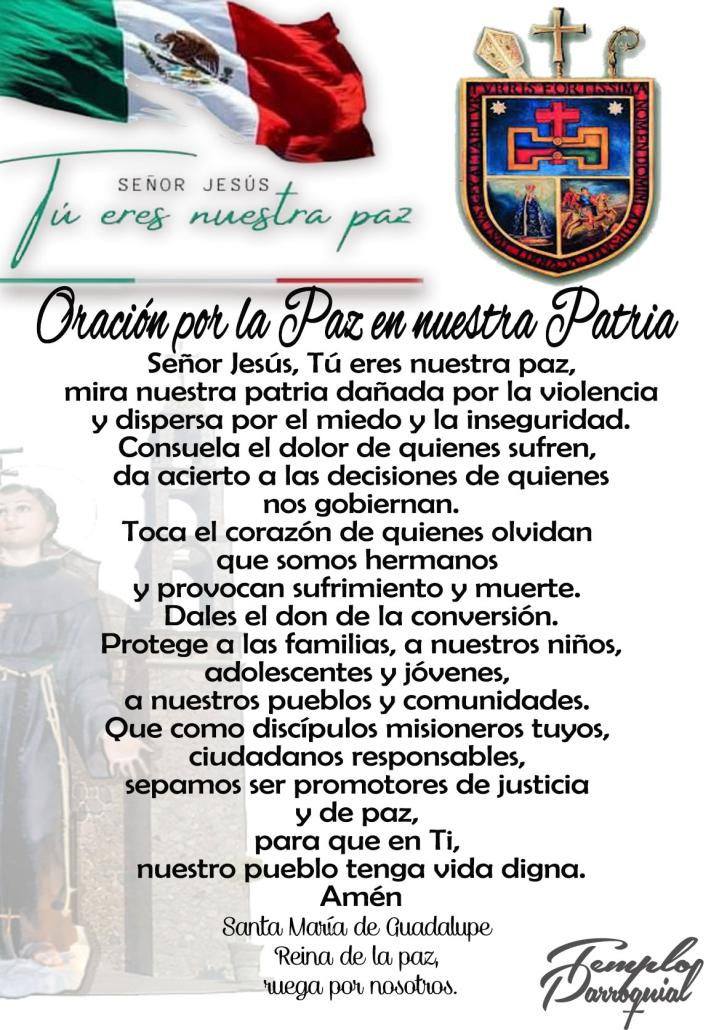 SeñorNuestroJesucristo, TúdijisteatusApóstoles: "lamiesesmuchaperolosobrerospocos; rogadalSeñordelamies queenvíeobrerosasucampo" Humildementetesuplicamos queenvíesatuIglesianumerosas ysantasvocacionessacerdotales yreligiosas TelopedimosporlaintercesióndelaSantísima VirgenMaría, nuestraMadre,yporladenuestros SantosPatronosyProtectores, queconsuvidaymerecimientossantificaron nuestrosuelo.