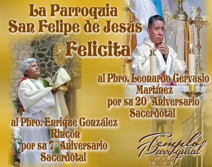 Por su Séptimo Aniversario Sacerdotal (abril 22) Pbro Enrique González Rincón y el Vigésimo Aniversario Sacerdotal (mayo 5) Pbro Leonardo Gervasio Martínez, muchas felicidades y Dios siga bendiciendo su vocación, misiónylabor.