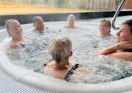 I den stora champangepoolen stiger små bubblor långsamt mot ytan. Vattnet håller 36 grader och omsluter kroppen med ett mjukt, konstant brus. Efteråt väntar den kalla isvaken, placerad mellan bastun och poolen.