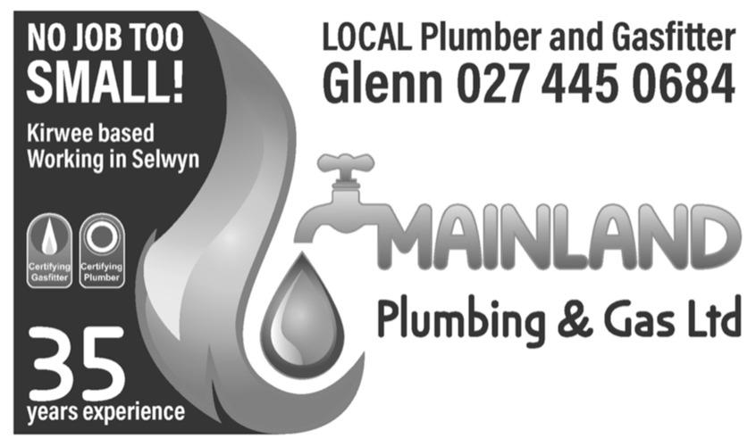 mould & silicone sealing. General repairs. Pleasephone033476702 WINDOW CLEANING WINDOW CLEANING SERVICES COUNTRY TOUCH Friendly & experienced professional service. Phone or text Darryl on 027 316 9968 $1,655 Incl GST • New Computers Computers • Laptops Laptops Laptops Laptops • Upgrades • Software Software Jon Lawrence Lawrence Ph: 03 318 3699 Mob: 027 688 9103 malcomputers02@gmail.com • Virus Virus Removal • Problem Solving Closed Saturdays Closed Saturdays ACER 515 • 15.6" FHD Display • Core i7-1165G7, 8GB DDR4 RAM • 512GB M.2 PCIe NVMe SSD • Nvidia GeForce MX350 • 1xUSB2.0, 2xUSB3.2, 1xUSB3.2 (Gen 1) Type C, 1xHDMI, 1xRJ45 • 802.11ax Wifi • Windows 10 Home 64-bit 0800 752 400 plainspgd@gmail.com • Maintenance • Renovations & new builds • Pump servicing and installation • Water filter installation • Water pump hire • Supply and installation of septic tank systems • Gas and wood fire installation • IQP in backflow prevention • Teatsprayer servicing DARFIELD DARFIELD BASED BASED TRADES TRADES