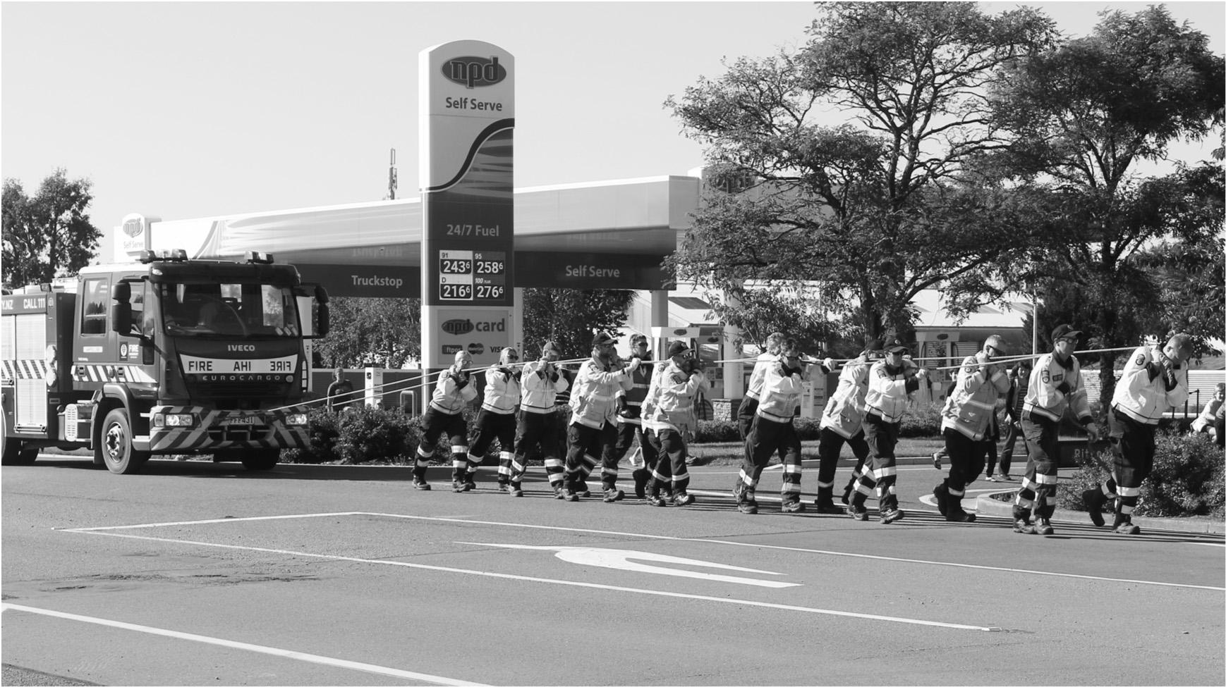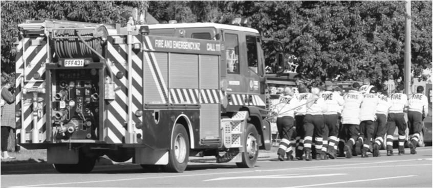 TheDarfield,HororataandSpringfieldFireBrigadesinaction, pullingthetruck,asafundraiser. Photocredit:KenMuscroftTaylor.
