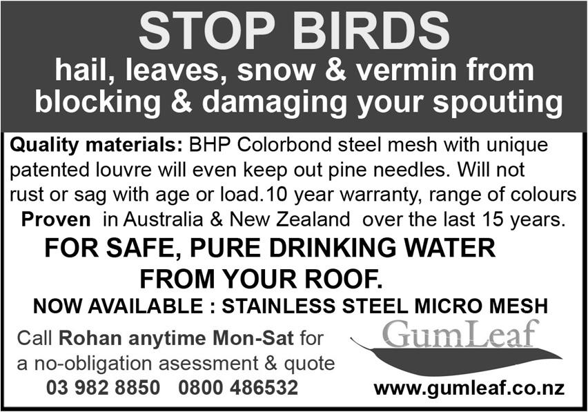 2 storey work! Roof leak repairs (incl Butynol), moss control, silicone seal, spouting clean & repairs, spider & fly control, bird proofing, roof painting. All roof & spouting types. Call Arthur’s, 7 days, 03 347 2635 or 027 584 7980.
