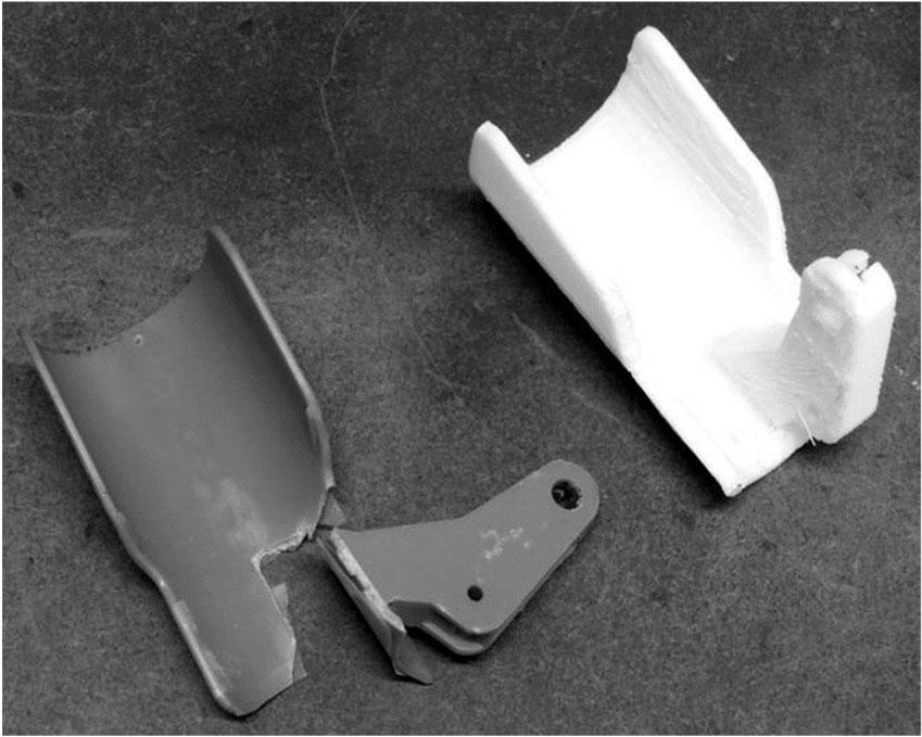 A replica of a lever mounting bracket for an electric lawnmower was made on the donated 3D printer at the Men’s Shed.
